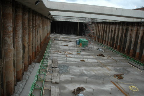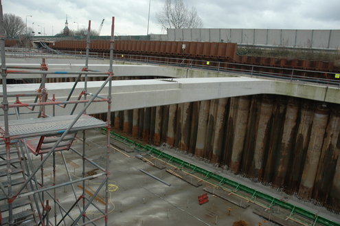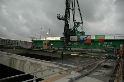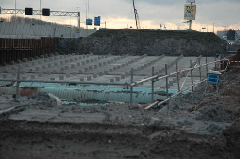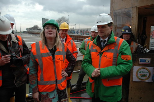 Minister Schultz bezocht vanmiddag de bouwplaats bij Roomburg waar BAM Civiel werkt aan de verdiepte A4 die daar over een lengte van zo’n 1400 meter in een half open bak wordt aangelegd. Hoewel de werkzaamheden voorspoedig verlopen en opgelopen achterstanden tot nu toe steeds konden worden ingelopen, duurt het nog zeker tot medio volgend jaar voordat de eerste auto’s door de tunnelbak rijden. Dat is wel veel eerder dan oorspronkelijk de bedoeling was. De weg is dan pas voor de helft klaar, maar Schultz besloot eerder dat het verkeer in die halve tunnelbak alvast over twee keer drie rijstroken gaat rijden. Op die manier kan er zo snel mogelijk iets worden gedaan aan de filedruk op het drukste stuk snelweg van Nederland. Die tijdelijke rijstroken zijn wel wat smaller dan als later ook de tweede helft van de weg klaar is. In verband met de verkeersveiligheid geldt er daarom in de overgangsfase een maximumsnelheid van 80 km/u.