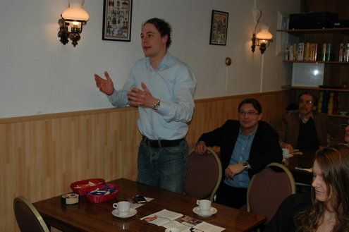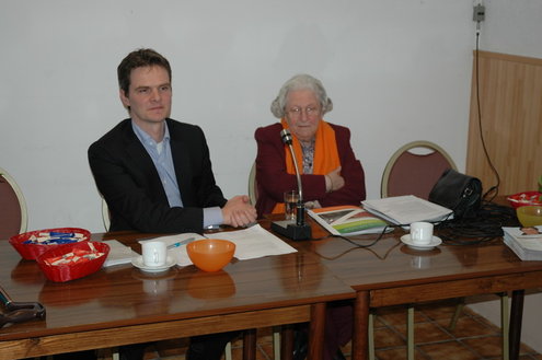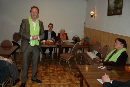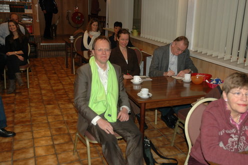 CDA-prominent Hannie van Leeuwen sprak tijdens het politiek café dat het CDA Leiden woensdagavond hield in de Ridderzaal van de Sint Josephkerk aan de Herensingel. De in Zoetermeer woonachtige Van Leeuwen is CDA-lijstduwer in Zuid-Holland voor de Statenverkiezingen van 2 maart. Met rond de 7000 voorkeurstemmen kan ze in theorie gekozen worden. In dat geval wil ze zich bezighouden met mobilitiet, het behoeden van de dorpen tegen leegloop en het zorgvuldig omgaan met de schaarse ruimte. Daar horen wat Van Leeuwen betreft geen nieuwe bedrijventerreinen bij, maar herstructurering van de huidige terreinen. (Foto's: Chris de Waard).