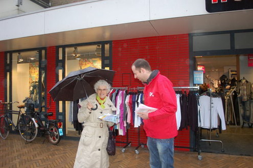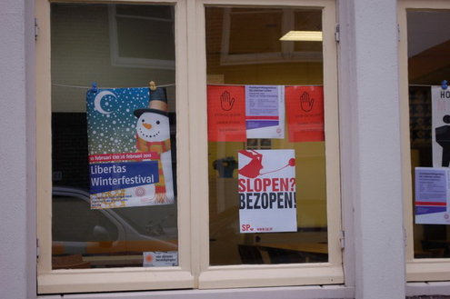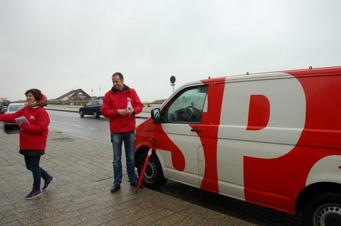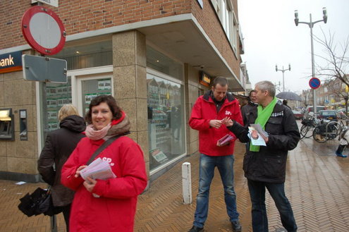 In Leiden gingen de SP-ers ondertussen van door tot deur in de Zeeheldenbuurt. Portaal heeft plannen om een flink aantal woningen te slopen, renovatie zou te duur zijn. De buurt is fel tegen en dat zal Portaal weten ook. De hele wijk hangt inmiddels vol met teksten als ‘slopen bezopen’. Aanstaande dinsdagavond zal Portaal de plannen aan de buurt presenteren tijdens een wijkbijeenkomst in het bedrijfsrestaurant van de reinigingsdienst aan de Admiraal Banckertweg.