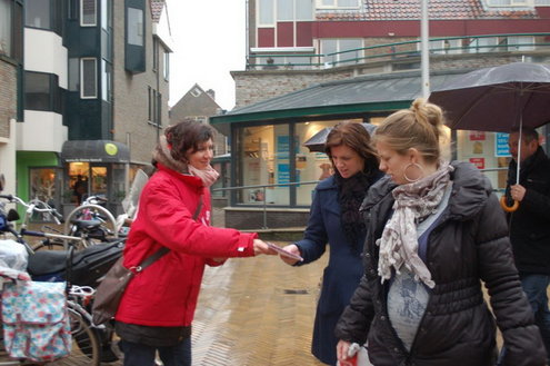 Eva de Bakker heeft het maar druk met de politiek. Naast raadslid in Leiden is ze ook statenlid voor haar partij in Zuid-Holland. In deze periode voor de statenverkiezingen mag ze nog eens extra hard aan de bak, want er moet campagne gevoerd worden voor de verkiezingen van aanstaande woensdag. Bijvoorbeeld tegen de voorgenomen sloop van honderden woningen in de Zeeheldenbuurt, maar ook (nog steeds) tegen de RijnGouwelijn. Voor het protest tegen de lightrailverbinding ging de partij dit keer onder meer naar Katwijk waar de provinciale lijsttrekker Harre van der Nat het SP-standpunt uitdroeg.