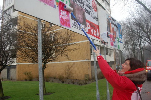 Tussen het flyeren door werd er ook nog hier en daar een extra postertje geplakt. (Foto's: Emile van Aelst).