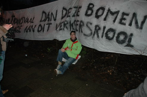 De 23 bomen waar het vandaag om ging, worden niet gekapt, maar verplaatst. De hovenier die in opdracht van de gemeente vanmorgen aan de slag wilde, legt uit dat er nu geulen om de bomen worden gegraven, waarna een aantal wortels wordt gekapt. Vervolgens wordt de geul weer dichtgegooid. Op die manier zou de kans zo groot mogelijk zijn om ze na verplaatsing weer ‘aan te laten slaan’. Volgens GroenLinks zullen de meeste bomen zo’n verplaatsing sowieso niet overleven.