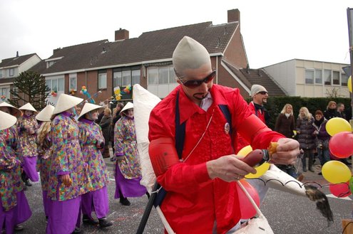Kokkerhout viert carnaval en in onze regio wordt dat nergens grootser aangepakt dan in het Brabant van het westen. En dus reed er afgelopen zaterdagmiddag een grote optocht door het dorp. Vijf kwartier lang praalwagens, loopgroepen en heel veel verklede feestvierders. Veel actueel thema’s passeerden de revue: de RijnGouwelijn, Benidorm Bastards, Maaskantje, Pastoor, de verkiezingen met de 130 km/u plannen, Wiki Leaks en een variant op Boer zoekt vrouw; Bouwmeester zoekt barvrouw.