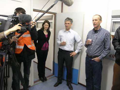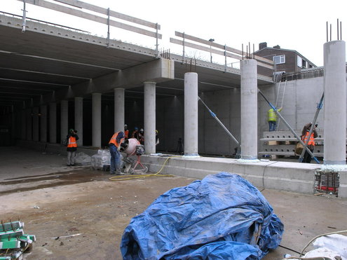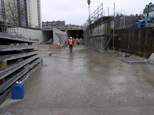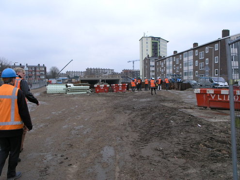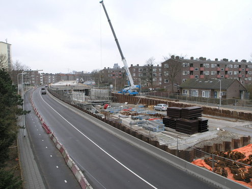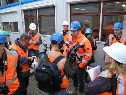 Vanmorgen kreeg de pers een rondleiding door de tunnelbuis in aanbouw. Over een jaar is het doorgaande verkeer onder de grond verdwenen. Met op- en afritten wordt het bestemmingsverkeer voor Leiden Noord afgewikkeld. Het duurt nog tot begin 2013 voordat ook die werkzaamheden zijn afgerond. (Foto's: Chris de Waard).