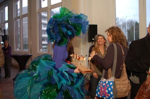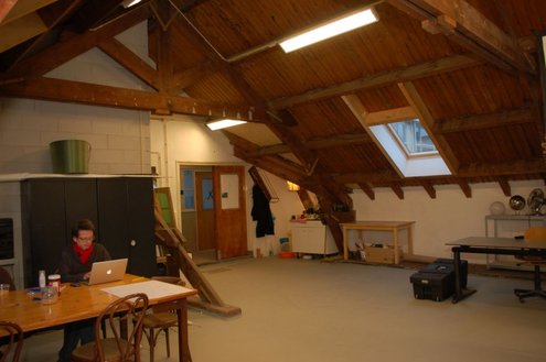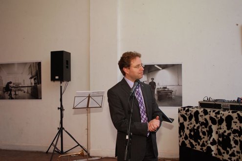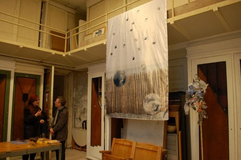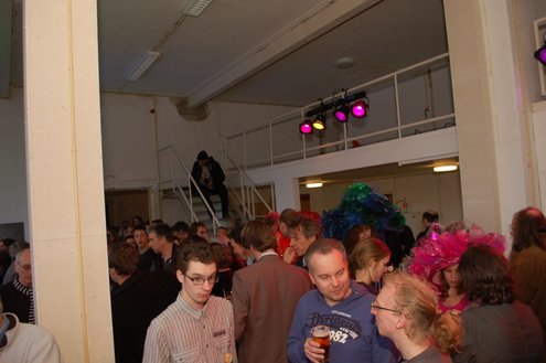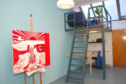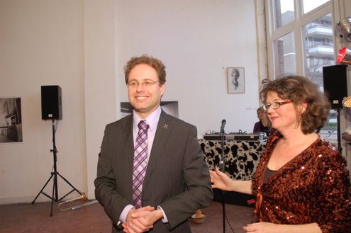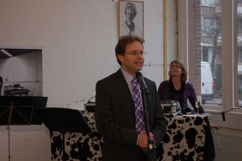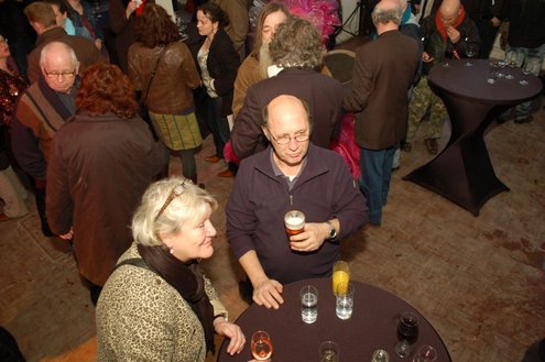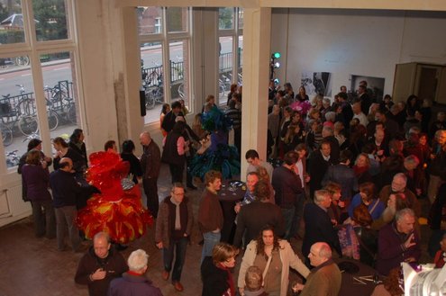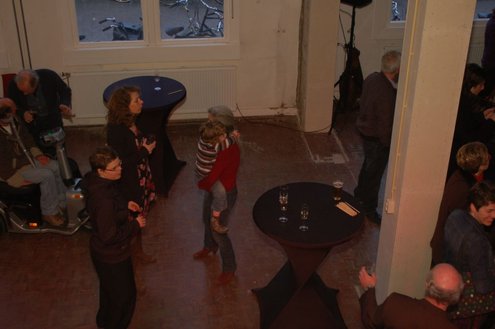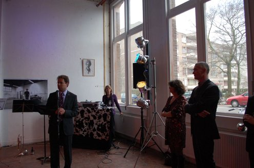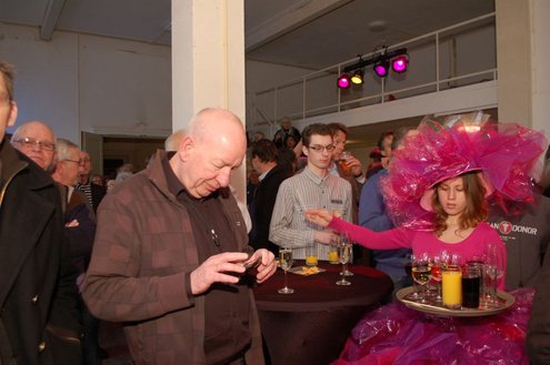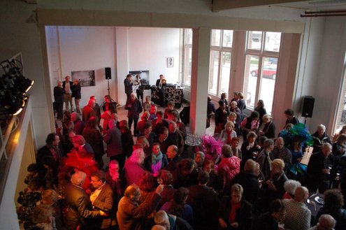 Vanmiddag om 17.00 uur plaatste wethouder Jan-Jaap de Haan vanaf een hoogwerker een vaantje op de top van het Haagweg4 complex en heropende hiermee het pand. Na jarenlange plannen en gesteggel is de verbouwing en actualisering van de voormalige ambachtsschool aan de Haagweg, die vele jaren geleden door kunstenaars werd gekraakt, nu officieel afgerond. Het pand is aangepast aan de huidige veiligheidsvoorschriften en dat was dan ook hard nodig. Na de openingshandeling van De Haan was het tijd voor een feestje en konden de bezoekers een kijkje nemen in de verschillende ateliers. (foto: Judith Bogaardt, reportage: Emile van Aelst)