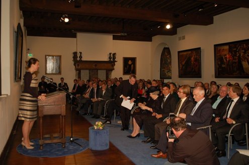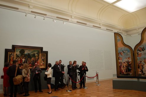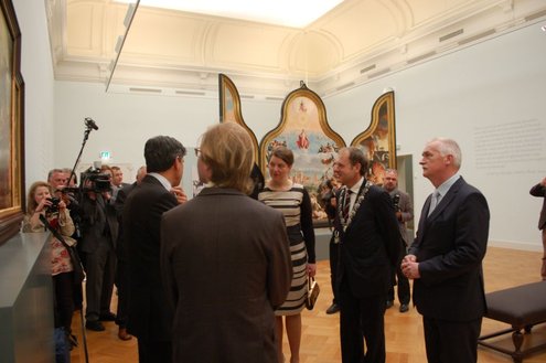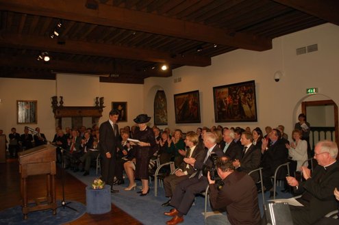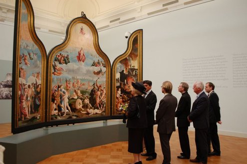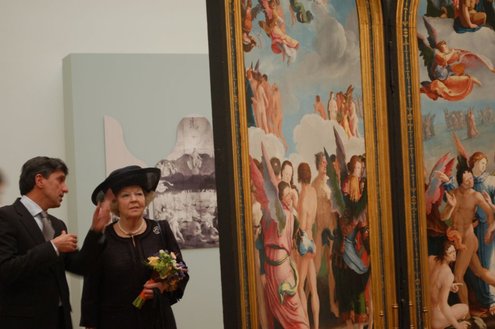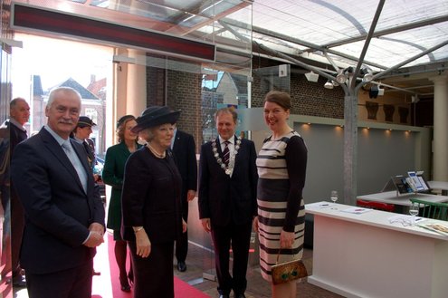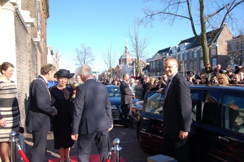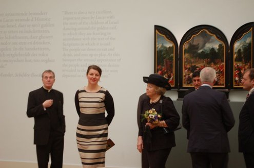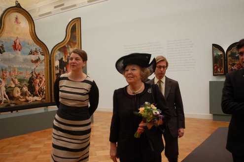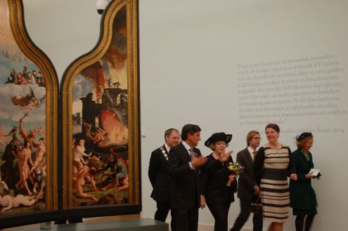 Gisteren heeft Koningin Beatrix onder grote belangstelling de tentoonstelling ‘Lucas van Leyden en de Renaissance’ geopend in Museum de Lakenhal. De grootschalige tentoonstelling heeft een internationale allure en is, naar aanleiding van Leidse bronnen, in nauwe samenwerking met het Amsterdamse Rijksmuseum tot stand gekomen. Naast burgemeester Lenferink, werd de Koningin hartelijk ontvangen door de directeur van het museum, Meta Knol. Koningin Beatrix toonde een grote belangstelling voor deze bijzondere tentoonstelling en de deskundige uitleg, die vooraf door verschillende sprekers werd gegeven. ‘Lucas van Leyden en de Renaissance’ is voor het publiek geopend van 21 maart tot en met 26 juni. Meer info: www.lakenhal.nl