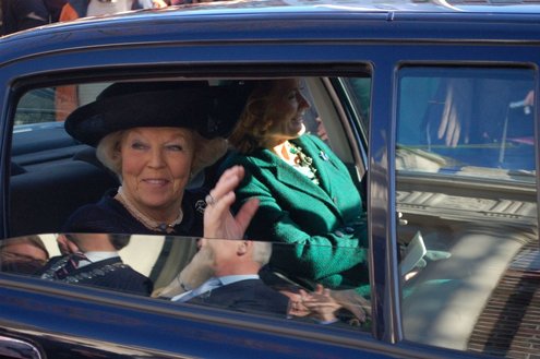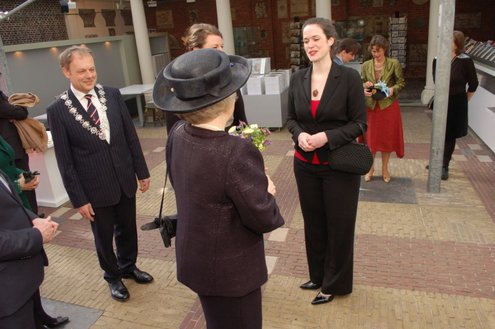 (Koningin Beatrix met directeur van Museum de Lakenhal Meta Knol, foto en reportage: Emile van Aelst)