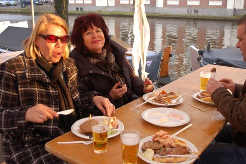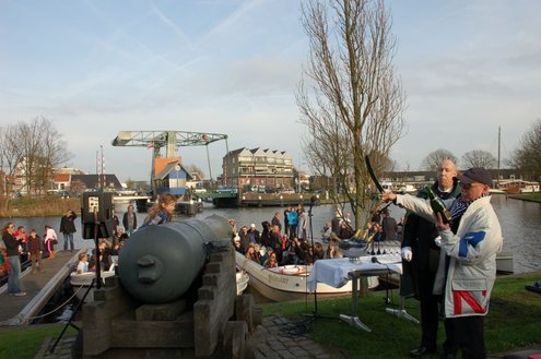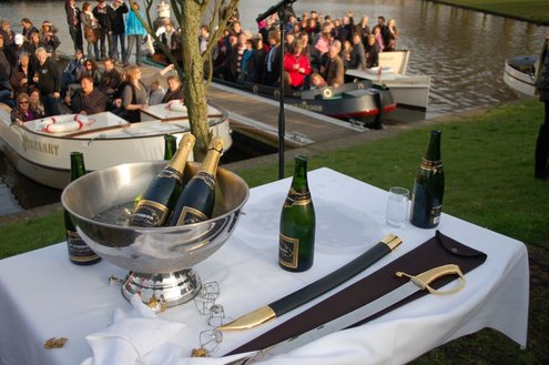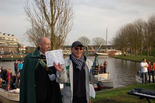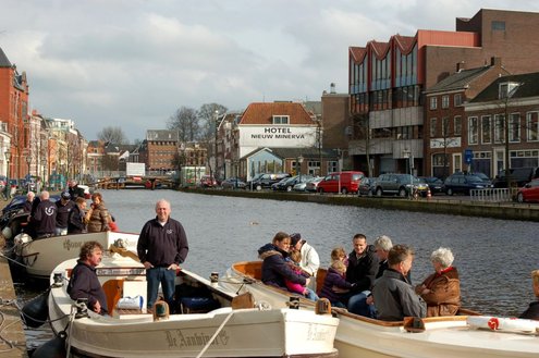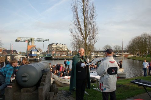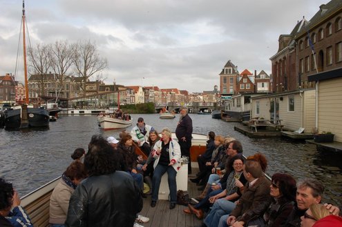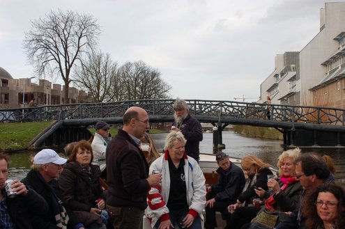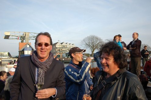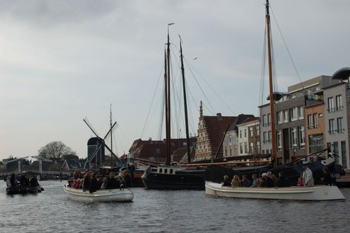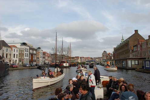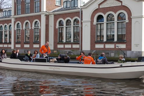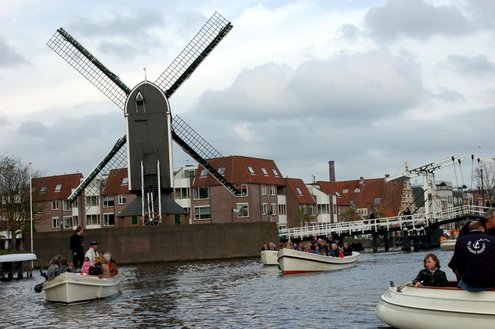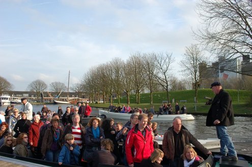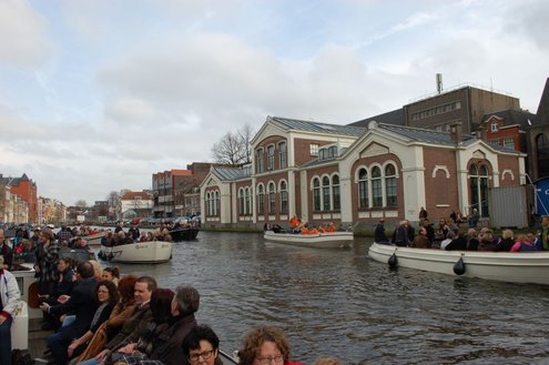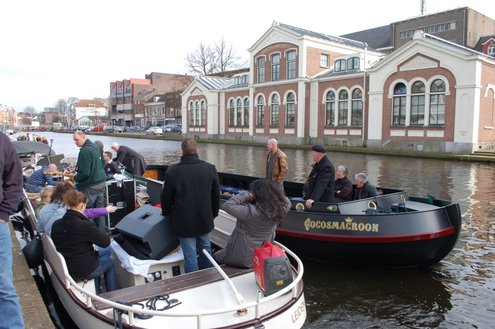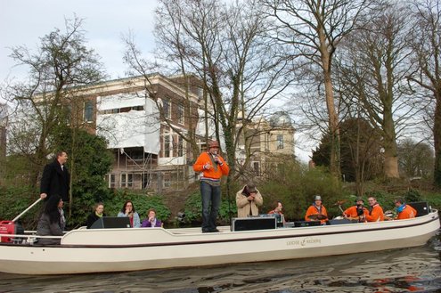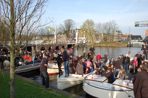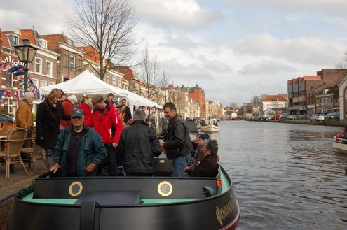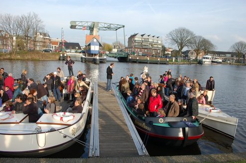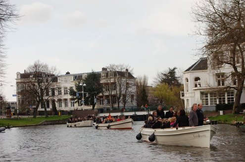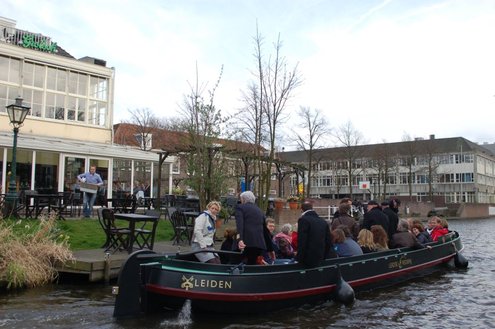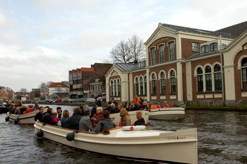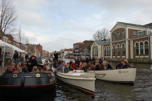 Gisteren werd de start van de Leidse Waterbussen uitbundig gevierd. Nadat de watertaxi’s uit het stadsbeeld zijn verdwenen, wilde De Leidse Rederij de Sleutelstad weer ‘op het water zetten’ en liet deze winter drie skûtsjes bouwen, die dienst zullen doen als waterbussen. Ruim 200 genodigden, waaronder 80 winnaars van de kerstboomactie van Peter Labruyere, lieten zich door de wateren van Leiden voeren, waarbij de toevoer van drankjes en bitterballen goed geregeld was. De Cocos Macroon en Wattanjuh maakten hun eerste, feestelijke vaart en de dag werd afgesloten met een uitgebreide barbecue op de Apothekersdijk. De muzikale omlijsting was in handen van de band Ramp Scenario. Voor € 7,50 kan men de hele dag onbeperkt reizen met de waterbussen, waar men overal kan opstappen. Emile van Aelst was van de partij en maakte een fotoreportage. ILoveLeiden.com was erbij voor een videoverslag.