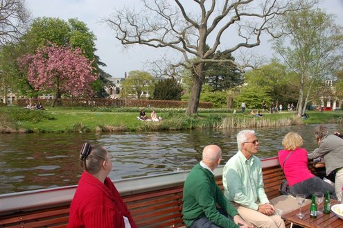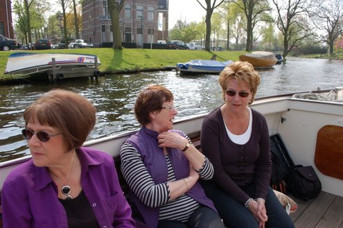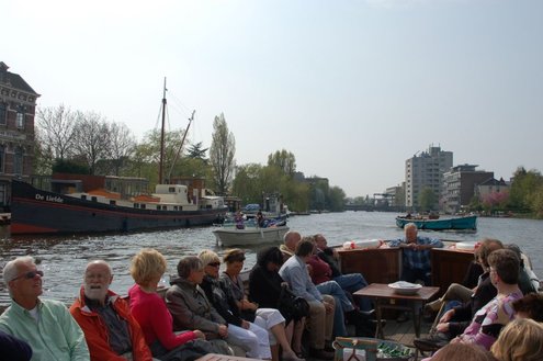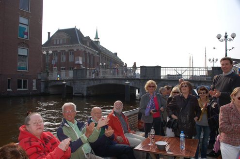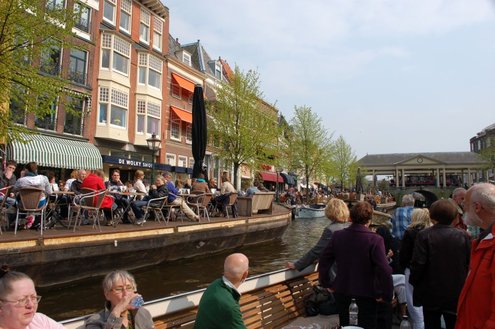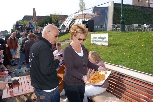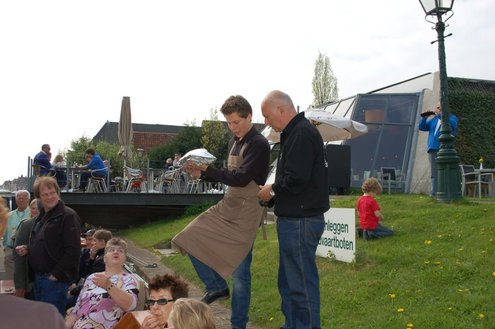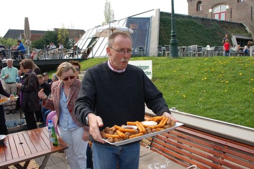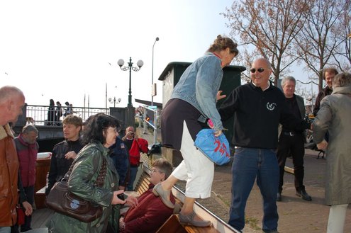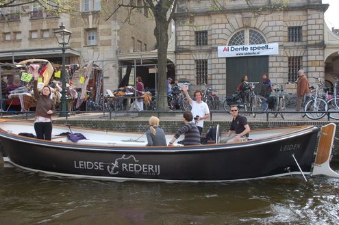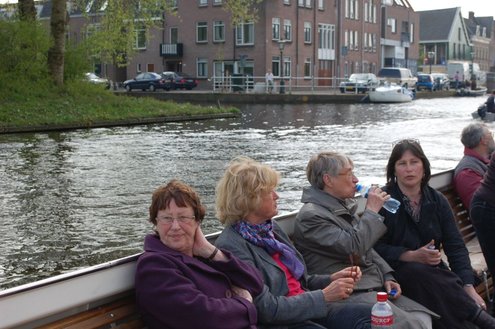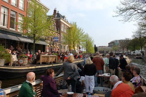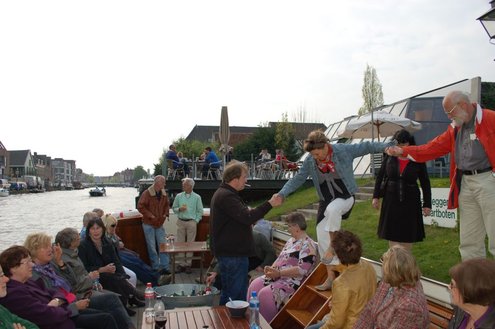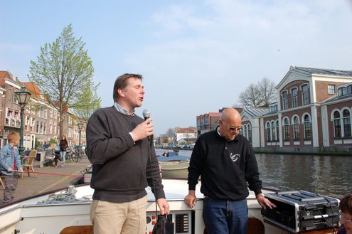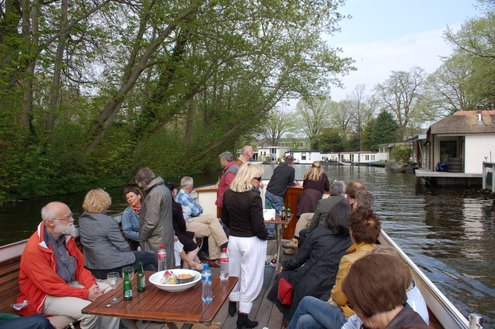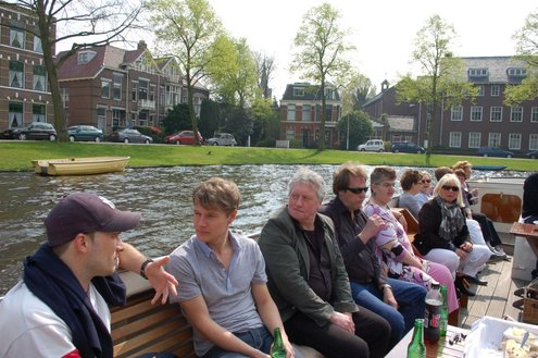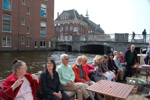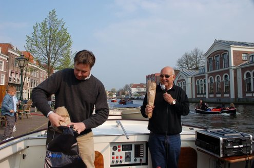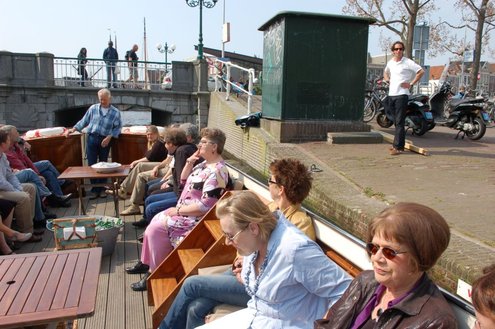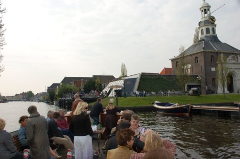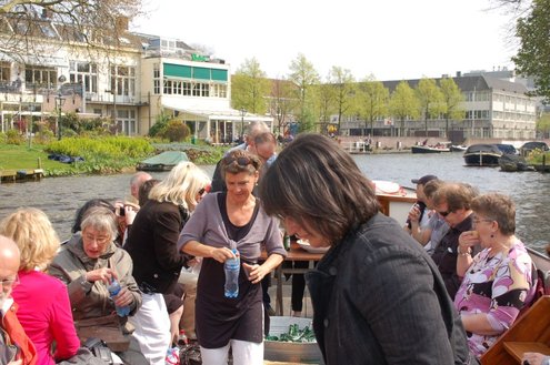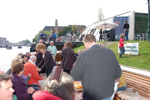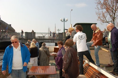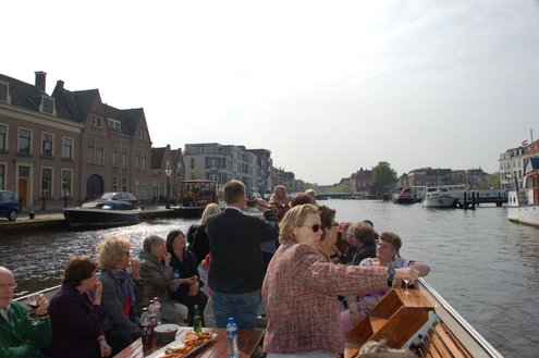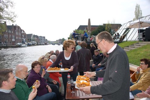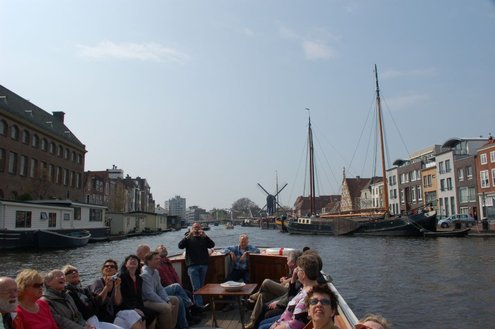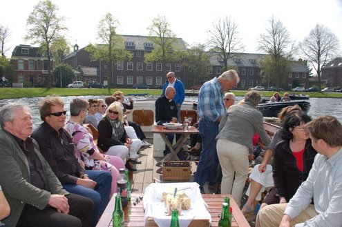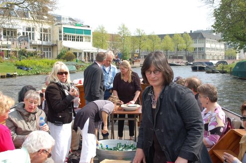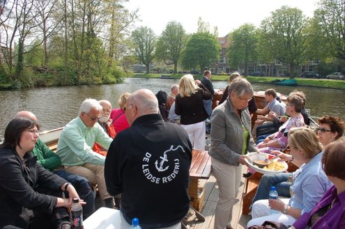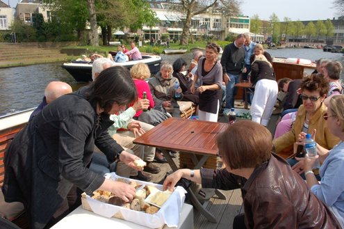 Gistermiddag waren ruim 30 vrijwilligers van de Voedelsbank Leiden e.o. te gast bij de Leidse Rederij. Daar werden ze eens welverdiend in de watten gelegd en maakten een mooie rondvaart van twee uur door de Leidse wateren. Voor de inwendige mens was goed gezorgd met de nodige hapjes en drankjes. Onderweg werd even gestopt voor de toevoer van warme snacks bij de Zijlpoort. (Foto’s: Emile van Aelst)