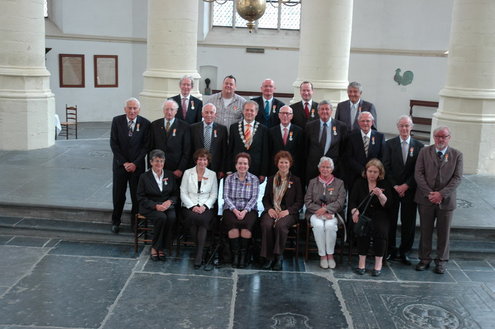 19 van de 20 gedecoreerden, poseerden na de uitreiking. Een twintigste lintje is vanmiddag door de burgemeester uitgereikt. Foto's: Chris de Waard.