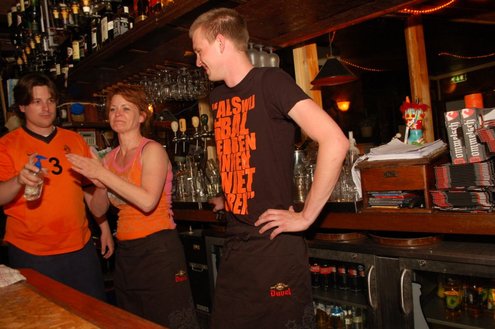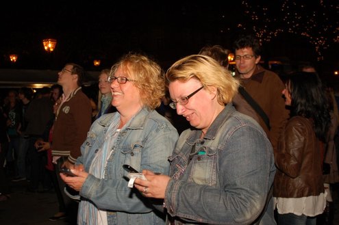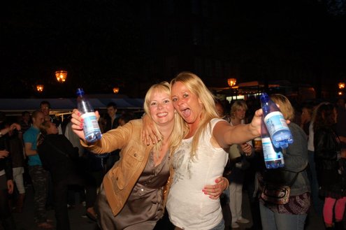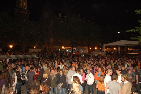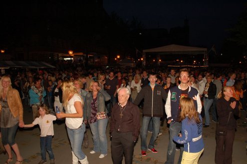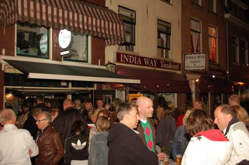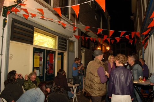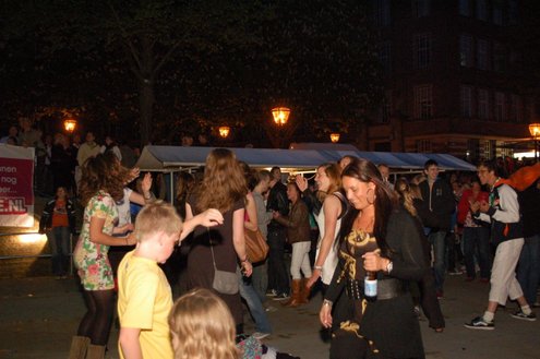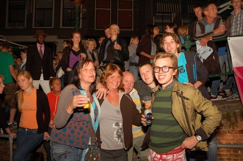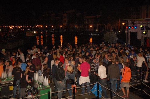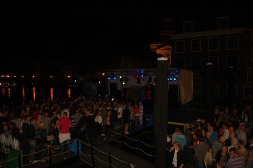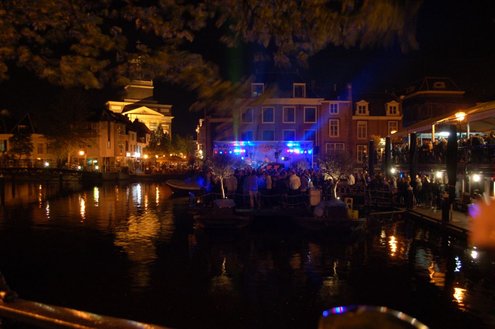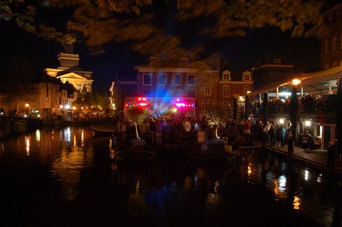 Rond een uurtje of 22.00 kwamen gisteravond de feestelijkheden in de Leidse binnenstad pas goed op gang. In en rond allerlei cafés was het swingen geblazen met spetterende livemuziek. Bij de Koornbeursbrug zijn speciale pontons in het water van de Nieuwe Rijn gelegd, waar gisteravond, maar ook vandaag, het publiek een extra goed uitzicht heeft op de optredens van diverse bands en acts. Ook het Stadhuisplein was gisteravond afgeladen met feestgangers. Meer info en volledig programma voor vandaag: www.koninginnedagleiden.nl (foto’s: Emile van Aelst)