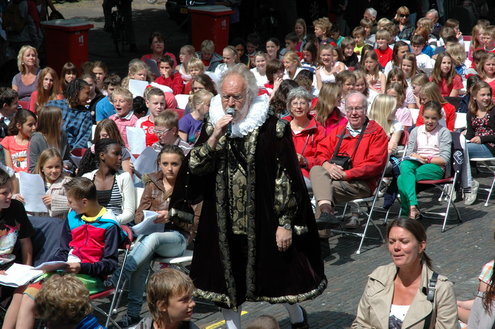 De stadsdichter had zelf ook nog een verrassing in petto. Een speciaal, uitbundig voorgedragen, 3 oktober lustrumgedicht: Feest voor je eigen!