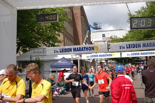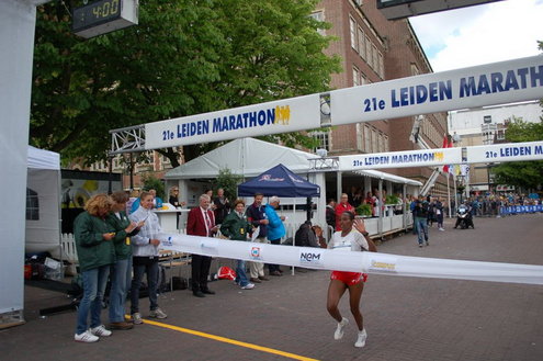 De Marokkaan Abdelkrim Boubker heeft vandaag Leiden Marathon gewonnen met een tijd van 2:14:40. De nummer twee, Samson Kikwai Tuiyange, kwam ruim tien minuten later over de finish en zette een tijd neer van 2.24:52. Eerste vrouw was Marshet Jimma Abo uit Ethiopië met 2:39:04. Mariska Kramer uit Friesland werd tweede met een tijd van 2:46:17. Ze had eigenlijk het parcoursrecord van de Leiden Marathon willen verbreken door haar eigen beste tijd, 2.38.55, die ze in november vorig jaar gelopen heeft in Philadelphia, vandaag te overtreffen. Dat lukte dus niet. Dat parcoursrecord werd overigens ook niet gebroken door de snelste vrouw. Het blijft dus op naam staan van de Russische Natalia Baliakina die in 1993 een tijd van 2.38.32 neerzette. De marathon-organisatie kijkt zeer tevreden terug op deze 21e editie, waarvoor zich uiteindelijk 8850 lopers inschreven. Er werden twee parcoursrecords gebroken: bij de 21 (heren) en de 10 (dames).