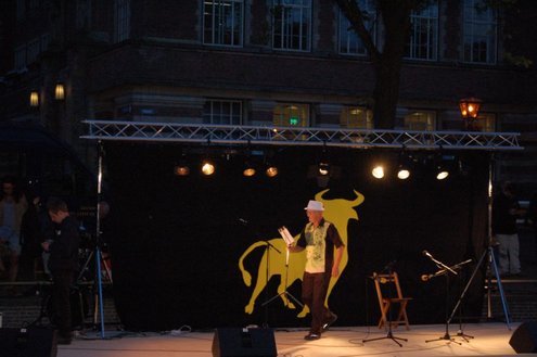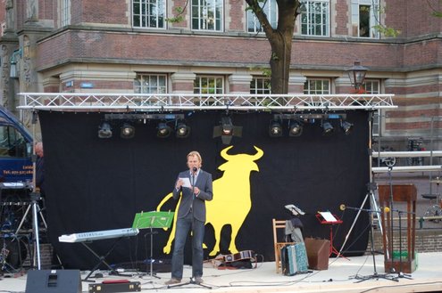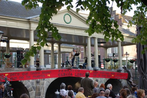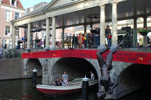 Tijdens de openlucht Poëziemanifestatie, die gisteravond plaatsvond in het centrum van de Sleutelstad, werd de Spaanse dichter Federico García Lorca herdacht en geëerd. De manifestatie werd voor de 11e maal georganiseerd door de stichting Tegen-Beeld. Burgemeester Lenferink en de Spaanse ambassadeur Z.E. Francisco Javier Vallaure de Acha verrichtten de opening om 19.36 uur, gelijk aan het jaartal dat Lorca overleed. Aansluitend werden tot circa 23.00 uur gedichten voorgedragen, gezongen, gespeeld, gedanst of op andere wijze vertolkt door een mix van kunstenaars, wetenschappers, acteurs, zangers, dansers, ondernemers, scholieren, studenten en prominenten. De avond werd afgesloten door PS|theater met hun drijvende theatervoorstelling ‘Balsa’. Het publiek volgde de boeiende manifestatie vanaf de terrassen en het water langs de Nieuwe Rijn. De manifestatie maakt onderdeel uit van de Cultuurmaand Leiden.
