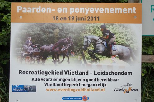 Regio - 20 juni 2011 - Afgelopen weekend was recreatiegebied Vlietland voor de achtste keer het toneel van een groot paardensportevenement. Ruim 400 paarden en pony’s verschenen aan de start van de 'Samengestelde Wedstrijden' voor ruiters en menners. De organisatie is blij met de medewerking van Recreatiecentrum Vlietland B.V., de Provincie Zuid Holland en de Gemeente Leidschendam-Voorburg. De niet-paardenliefhebbers konden een mooie fietstocht maken, hoewel het weer voor alle activiteiten niet erg meewerkte. Meer info: www.eventingzuidholland.nl (Foto’s: Emile van Aelst)