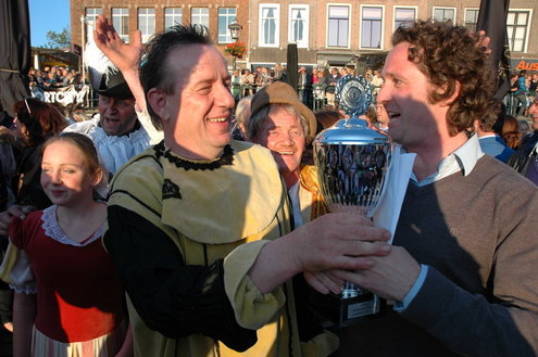 Alsof hij nooit iets anders heeft gedaan, praatte de nieuwe presentator Chris Verplancke gisteravond de 26e peurbakkentocht aan elkaar. Van tevoren was hij wel een beetje zenuwachig, zo vertrouwde hij ons toe. Het is tenslotte niet niks om na 25 jaar het gezicht van de Lakenfeesten, Aad van der Luit, op te volgen. Maar nadat de bootjes vanaf 19.00 uur in de stralende zon langs het waterpodium bij Annie’s trokken ging het als vanzelf. De tientallen peurbakken oogstten weer veel lof bij publiek en jury. Uiteindelijk mochten er 12 een prijs komen ophalen. Drie winnaars per categorie: muziek, bedrijven, verenigingen en particulieren.