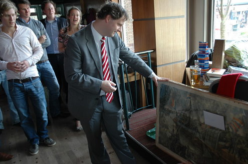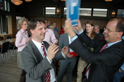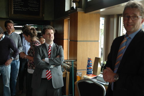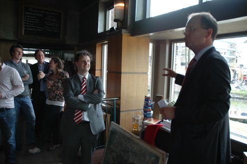 Afgelopen dinsdag nam Joost Bleijie officieel afscheid als centrummanager van Leiden. Hij vervulde die funcie de afgelopen 3,5 jaar en vertrekt nu naar MKB Nederland. Voorzitter Frans Schohaus en wethouder Pieter van Woensel spraken Bleijie toe. Zelf maakte Bleijie van de gelegenheid gebruik om nog eens te hameren op de belangrijke rol die het centrummanagement kan vervullen als belangenvertegenwoordiger van de binnenstadondernemers. “Er is in Leiden geen andere partij die dat kan doen.” Over parkeren in Leiden zweeg hij wijselijk. Per 1 juni is Bleijie als centrummanager opgevolgd door Erwin Roodhart.