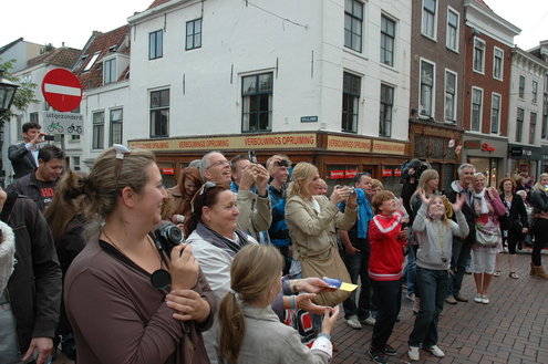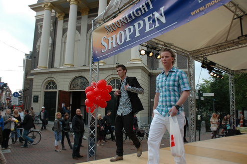 Afgelopen avond kon Leiden voor het eerst kennismaken met het fenomeen ‘moonlightshoppen‘ in het centrum en zowel de gezamenlijke binnenstadwinkeliers als het Centrum Management Leiden hadden flink uitgepakt om het de bezoekers naar de zin te maken. Winkeliers legden massaal de loper uit, in veel winkels was live muziek of draaide een dj en ook werden de koopjesjagers op hun wenken bediend met allerlei speciale moonlight-aanbiedingen. Bij de Hartebrugkerk was een catwalk aangelegd waar elk uur een modeshow werd gehouden. Verzorgd door een flink aantal modezaken uit het centrum. Ook was er straattheater.