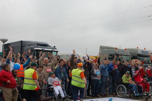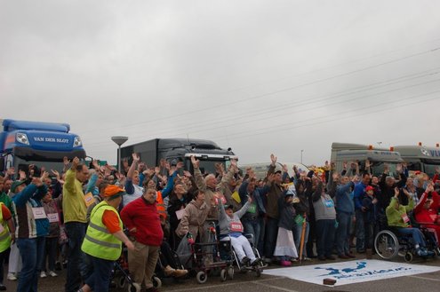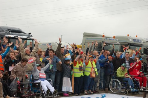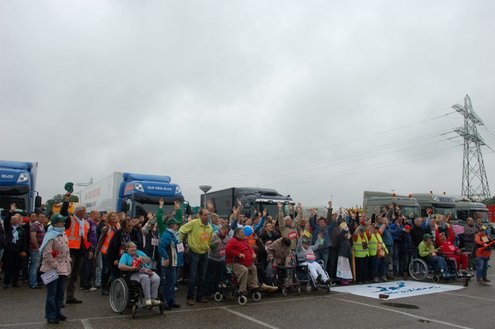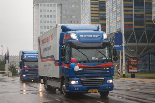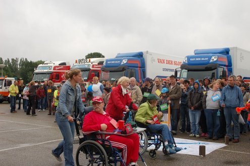 Vanmorgen trok voor de zevende keer de Leidse Toetertoer door de Sleutelstad en de Bollenstreek. Een stoet van ruim 60 vrachtwagens in alle soorten en maten namen een grote groep mensen en kinderen van VTV Centrum Club58, met een geestelijke of lichamelijk handicap, mee op toer; een geweldige ervaring! De chauffeurs, verkeersregelaars en verzorgenden hebben zich allemaal, op vrijwillige basis, ingezet om hen weer een onvergetelijke dag te bezorgen. De toer is een initiatief van de Lions Club Leiden Oude Rijn. ( foto’s: Emile van Aelst )