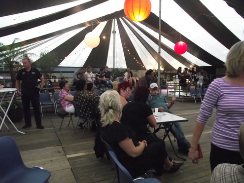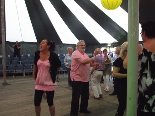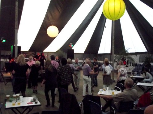 Naarmate het later wordt, komen steeds meer mensen de feesttent binnen, waar de swingende band al snel de voetjes van de vloer krijgt. Hofkes: “De coördinatie tussen al die verschillende feestelijkheden, mag wel wat beter volgend jaar, maar afgezien van de afgelaste talentenjacht, mogen we niet mopperen over de belangstelling en kunnen we spreken van een groot succes!.”
