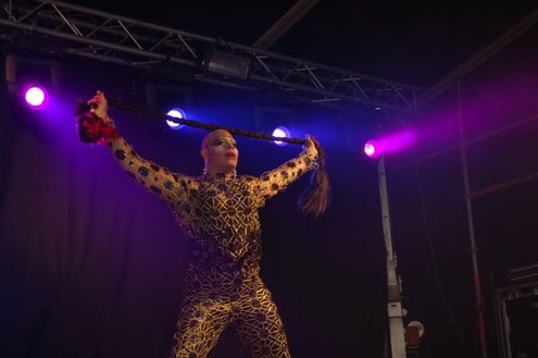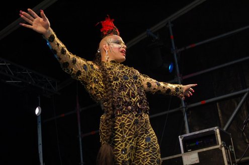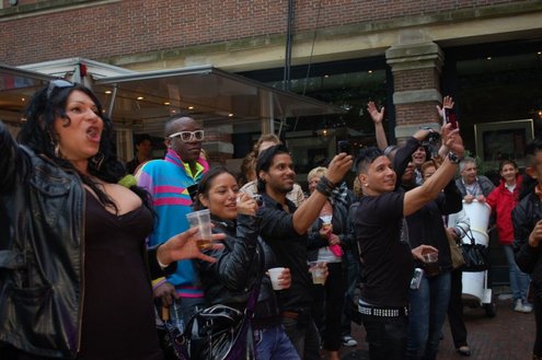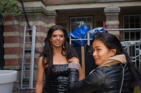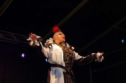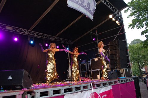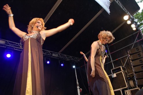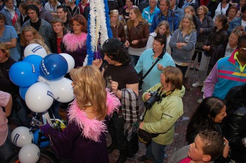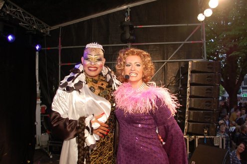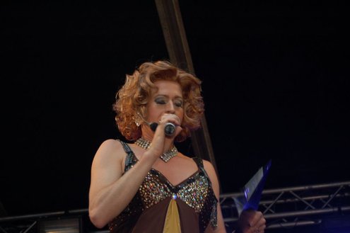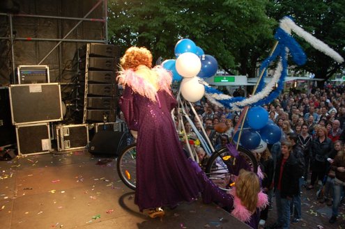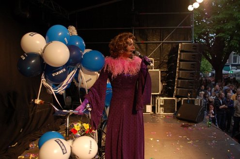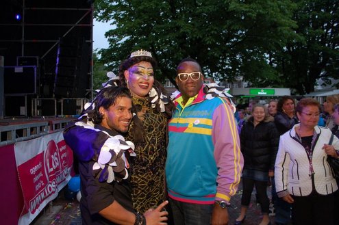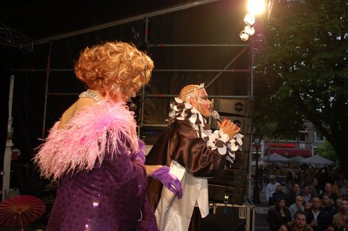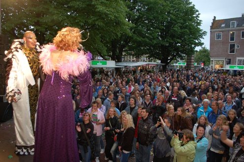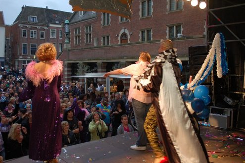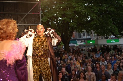 Voor de tweede maal oprij sleepte de Groningse Miss Dubai de prijs in de wacht als Diva Queen of the Year-travstieverkiezing. Het Stadhuisplein liep gisteravond rond 19.30 uur vol met belangstellenden, die per sms hun stem uit konden brengen. In de pauze werd een spetterende show gegeven door presentatrice Miss Christina Carrington (Lorenzo) en The Alley Girls. Na afloop van de finale was het swingen geblazen muziek van Sebastiaan Sleebos, Menasse Workala & Funkerman. (Foto’s: Emile van Aelst)