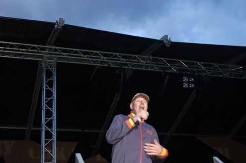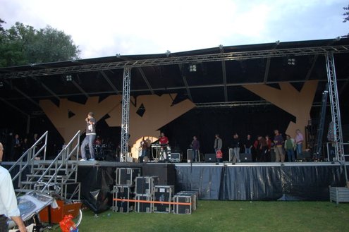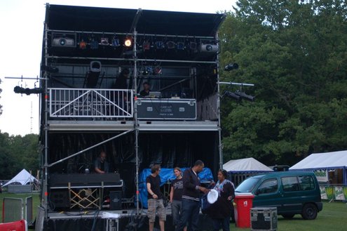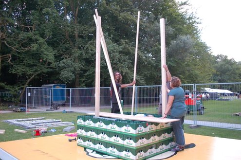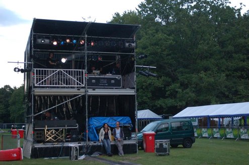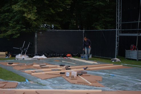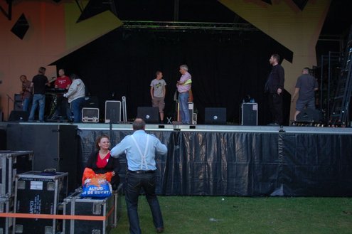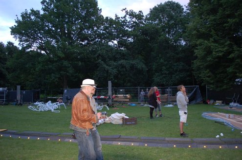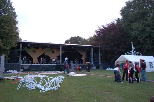 De opbouw van Werfpop in de Leidse Hout, was gisteren al in volle gang. Het festival bestaat dit jaar 30 jaar en vanavond wordt een bijzondere rockopera opgevoerd onder de titel: ‘Werfpop, de Rockopera’. 30 jaar muziek en bands passeren de revue, uitgevoerd in zang, dans, toneel, videoproducties en ‘special effects’. Tijdens de opbouw werd er druk gerepeteerd voor het spektakel van vanavond. Meer info en volledig programma: www.werfpop.nl (Foto’s: Emile van Aelst)