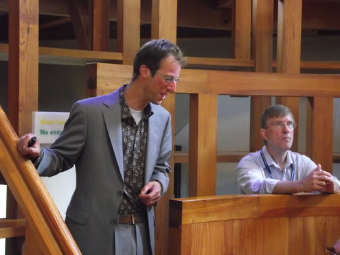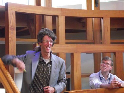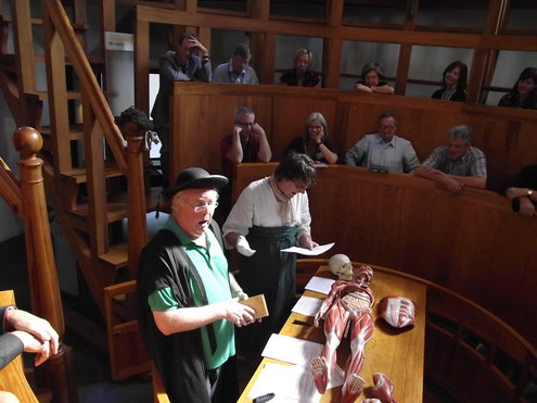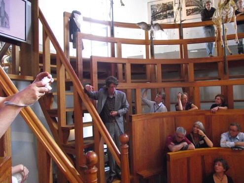 Jan Geert Majoor, hoofdredacteur van HDC Media (o.a. Leidsch Dagblad) gaf gisteren het startsein voor de campagne ‘Red Museum Boerhaave!’ De campagne moet aan het einde van dit jaar een eenmalig bedrag van € 700.000,- opleveren om sluiting van het museum te voorkomen en alle betrokkenen zijn ervan overtuigd, dat dit doel voor 31 december wordt gehaald. Na een historische lezing, gevat in een soort toneelstukje in het Anatomisch Theater van het museum, gingen alle belangstellenden en genodigden naar buiten, waar directeur Dirk van Delft en Majoor de zeepkist beklommen en een vurig pleidooi hielden voor behoud van dit belangrijke museum. Daarna werd de speciale museumsnack, het ‘Boerhaaviaantje’ gepresenteerd, geproefd en gekeurd. De acties zijn noodzakelijk, omdat staatssecretaris Zijlstra de spelregels voor de eigen inkomsten van het museum met terugwerkende kracht heeft veranderd, waardoor Boerhaave 17,5 % van de Rijksbijdrage vanaf 2010 al zelf dient te realiseren. Van Delft: “Ik ben ervan overtuigd, dat we op de verjaardag van Boerhaave zelf en dat is op 31 december, hem kunnen feliciteren met het behoud van ‘zijn’ museum.” (Directeur Dirk van Delft, foto en reportage: Jacqueline Borg.)