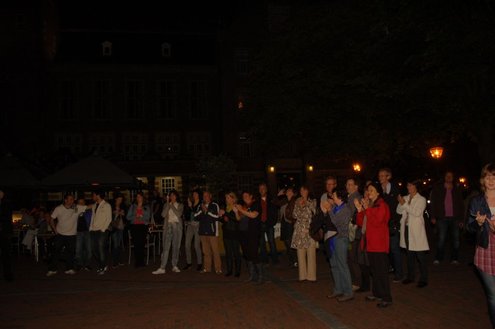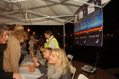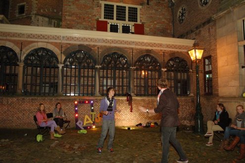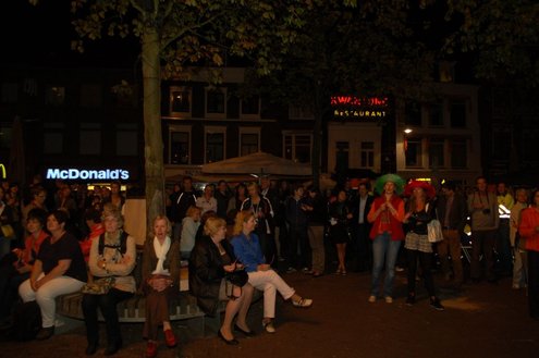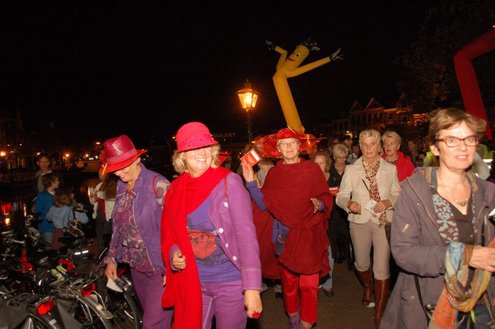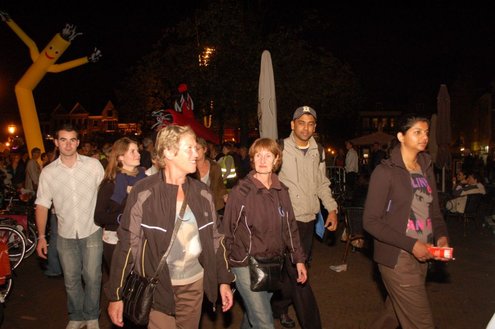 Gisteravond deden ruim 1000 mensen mee met de eerste Midnightwalk door de Leidse binnenstad. Er werd gelopen in groepen van 100 deelnemers, waaronder burgemeester Lenferink, die de wandeling opende en zei, dat er volgens hem een nieuw evenement geboren was in de Sleutelstad. De verrassende wandeling startte en eindigde op de Beestenmarkt en voerde de deelnemers vier kilometer langs de mooiste plekjes waarbij er onderweg allerlei verrassende optredens plaatsvonden. De totale opbrengst van dit evenement gaat naar de Leidse stichting Java Village. Deze stichting ontwikkelt een bijzonder project waarmee ongeletterde vrouwen op West-Java (Indonesië) een eigen bedrijfje op kunnen zetten. (Foto’s: Emile van Aelst)