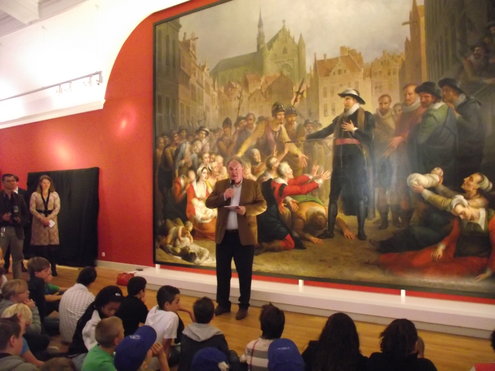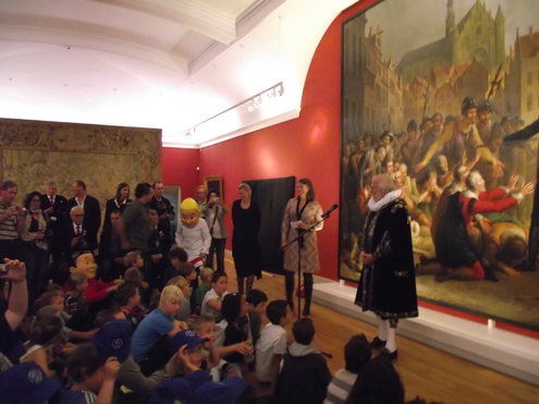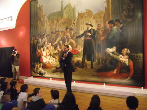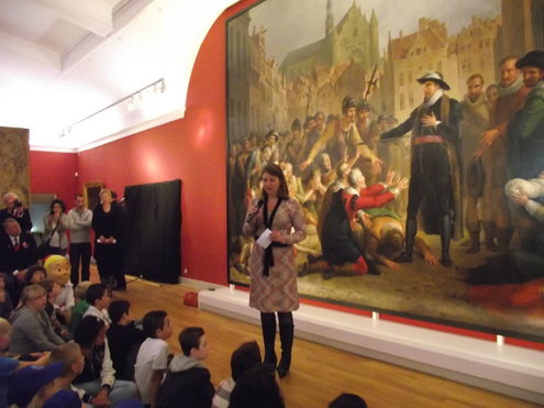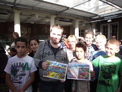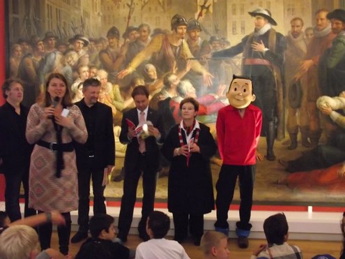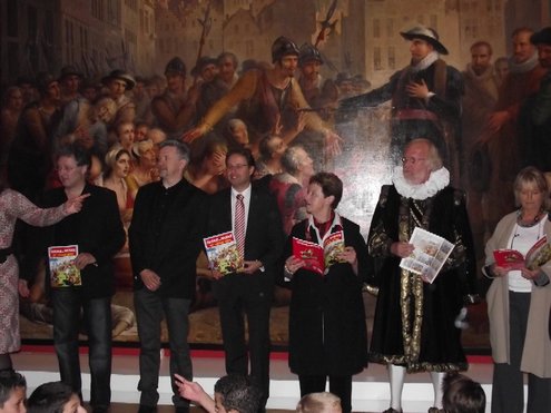 Vanmorgen werd het nieuwste Suske en Wiske-album: ‘Het lijdende Leiden’ overhandigd aan ‘burgemeester’ Van der Werf, loco-burgemeester Jan-Jaap de Haan, Helena Vandersteen en aan de voorzitter van de 3 October Vereeniging Els van Eijck van Heslinga. De overhandiging vond plaats in Museum de Lakenhal, waar directeur Meta Knol iedereen welkom heette. Naast alle genodigden en veel pers, waren er ook grote getalen kinderen aanwezig, die mee hadden gedaan met de kleur/stripwedstrijd. Bas en Melvin van de Vuurvogel, een lesplek voor kinderen, die niet meer op een reguliere basisschool les kunnen krijgen, lieten trots hun winnende inzending zien. De Standaard Uitgeverij heeft in samenwerking met de 3 October Vereeniging Leiden, die dit jaar 125 jaar bestaat, het heldhaftige verhaal over Leidens Ontzet uit 1574 omgetoverd tot een nieuw Suske en Wiske-stripverhaal. Het album is vanaf vandaag te koop in de hal van het museum.