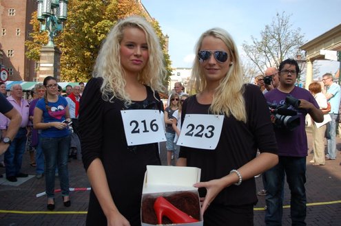 Gisteren werd een spannende Stiletto (naaldhakken) race gehouden in het kader van de derde editie van Ladies Day. Het zonovergoten parcours trok veel bezoekers en presentator Aad van der Luit moedigde de dames aan en voorzag de race natuurlijk van het nodige humoristische commentaar. De hooggehakte Donna Blom sleepte de eerste prijs in de wacht, op de hak gevolgd door Sterre Waisvisz, die tweede werd en Livia Ramos, die de derde prijs in ontvangst nam. Naast de sportieve prestaties van de dames werd er ook op originaliteit van de outfit gelet en wonnen de zusjes Sanne en Maaike Kruidenier de originaliteit- en poedelprijs.
