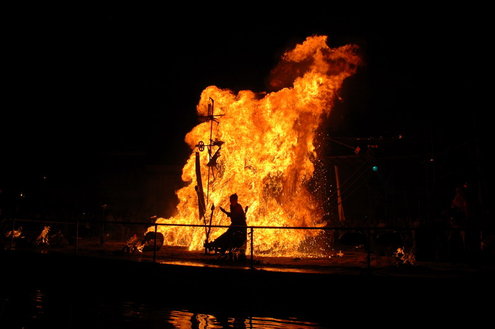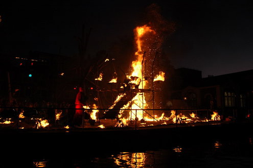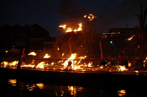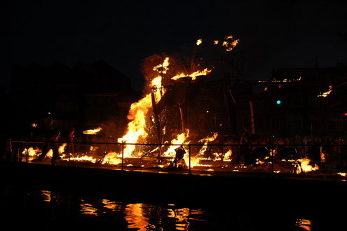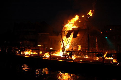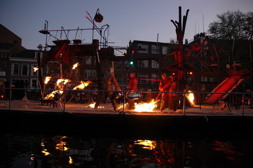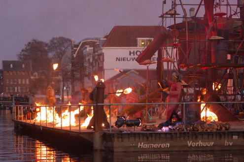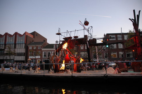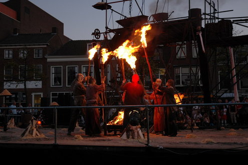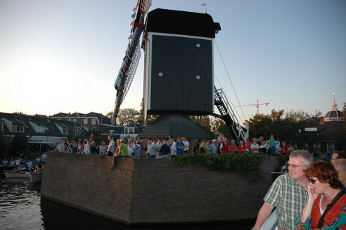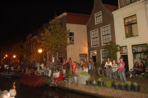 De geuzen die in historische schepen Leiden binnenvaren, een spectaculaire opening met een vurige act en aansluitend de eerste moonlightcruise met 100 sloepen door Leiden. Dat waren gisteravond de ingrediënten van de start van de extra lange viering van Leidens Ontzet 2011. De jubilerende 3 October Vereeniging had flink uitgepakt en dat werd gewaardeeerd. Duizenden mensen bekeken langs het water van de Apothekersdijk de meer dan spectaculiare openingsact, waarin de laatste slag om Leiden symbolisch werd nagespeeld.