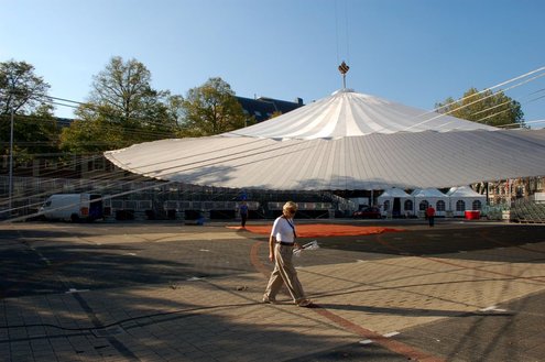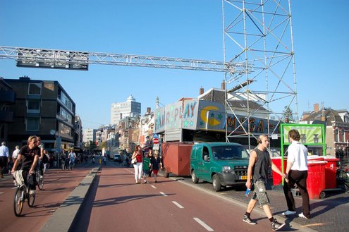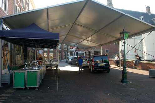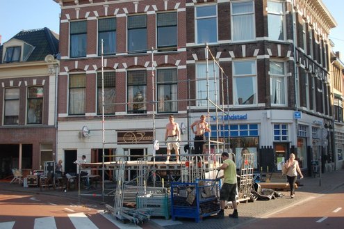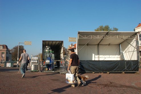 Vandaag werden overal in het Leidse stadshart voorbereidingen getroffen voor de komende 3 Oktoberfeesten. Mobiele toiletten werden aangevoerd, podia opgebouwd, barretjes geïnstalleerd, de boel versierd en de voorraden gecheckt. De traditionele bodywarmers kunnen deze keer in de kast blijven, want het belooft een zonnig en zomers feest te worden: ”We zijn er helemaal klaar voorrrr!” Emile van Aelst volgde de opbouw met zijn camera. Info over het volledige feestprogramma: www.3october.nl