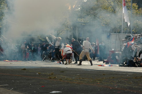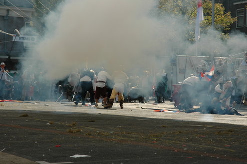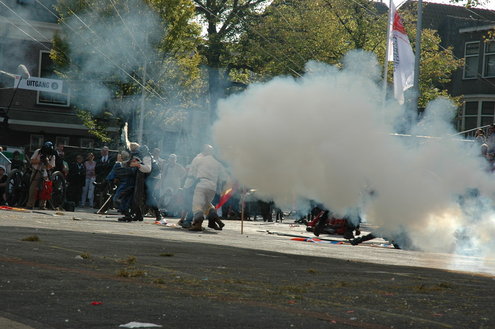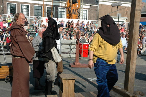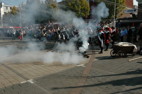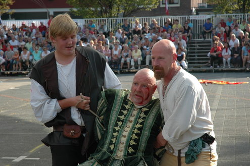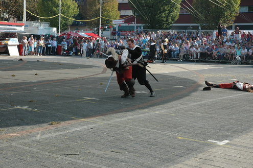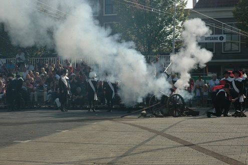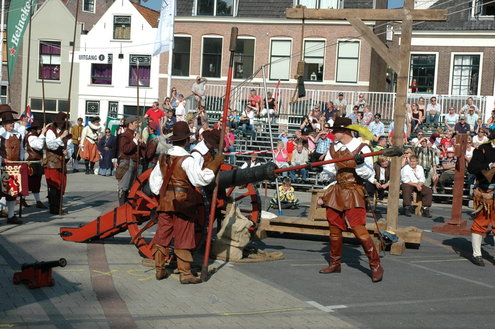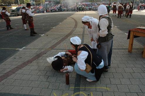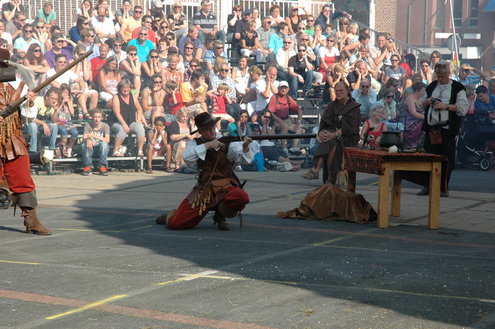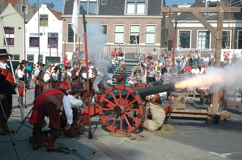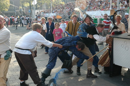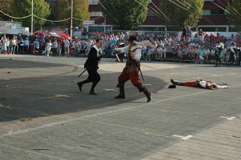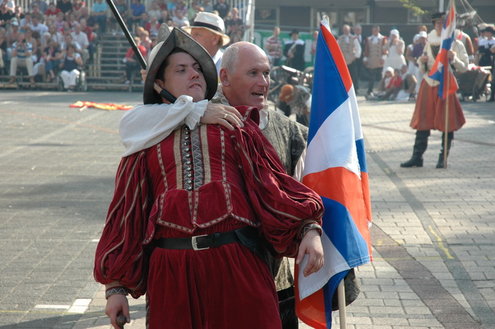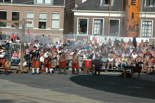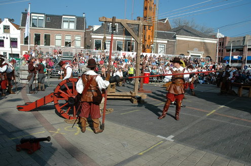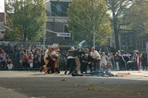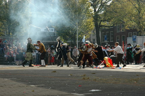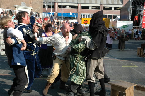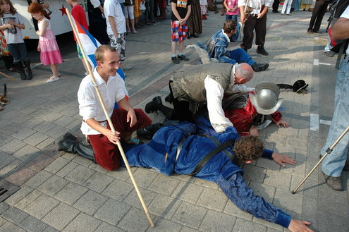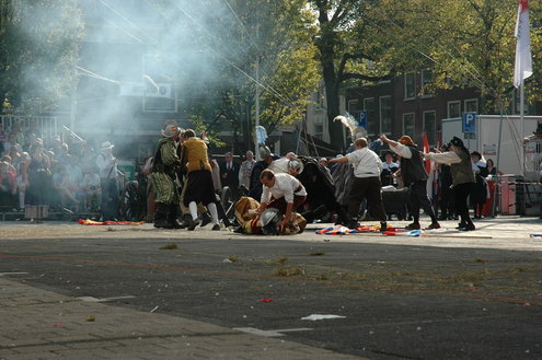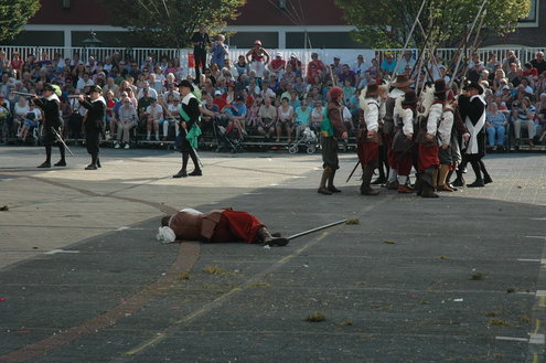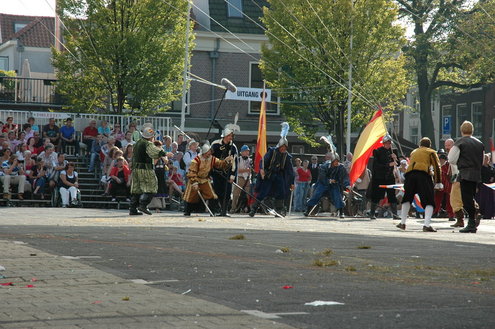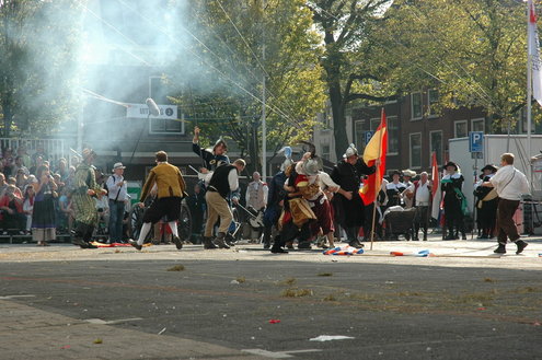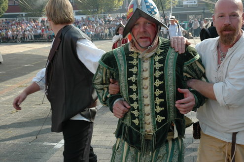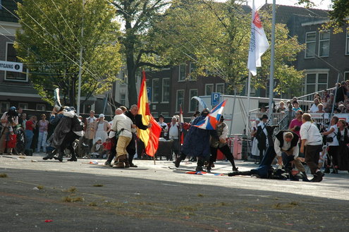 Na een hevige strijd werden ook vanmiddag de Spanjaarden weer verslagen en liep het slecht af met Valdez. De Spaanse veldheer die in 1574 Leiden belegerd hield. (Foto's: Chris de Waard). Alle foto's zijn na te bestellen via www.oypo.nl/sleutelstad.