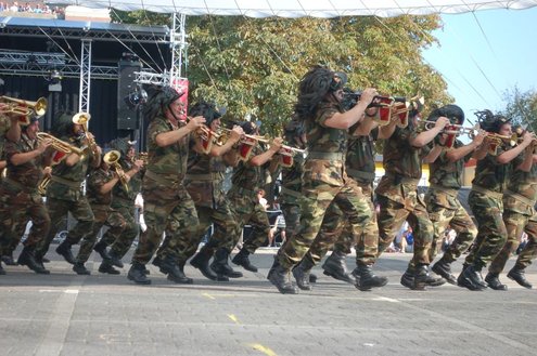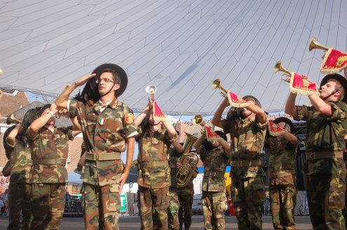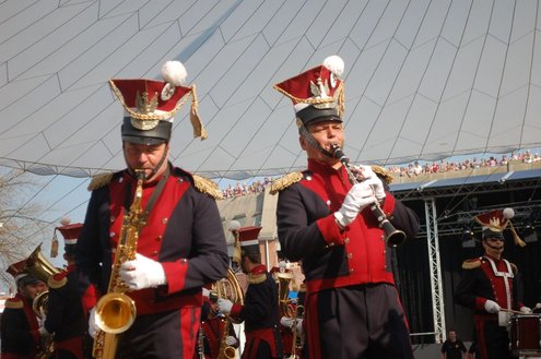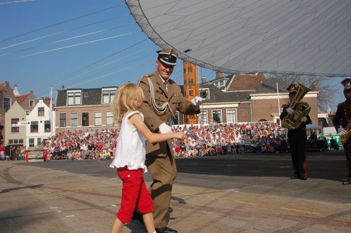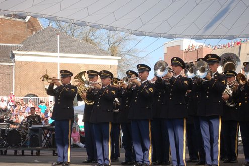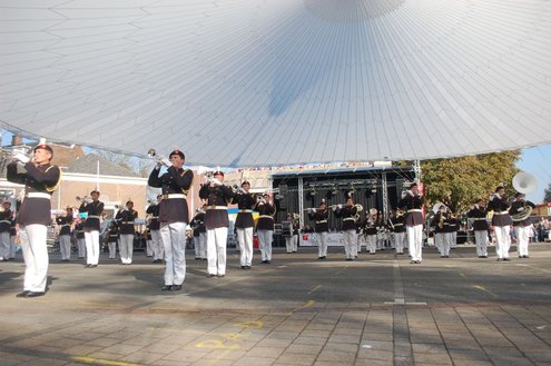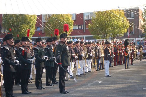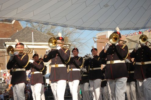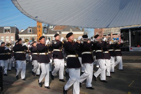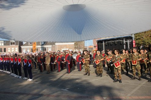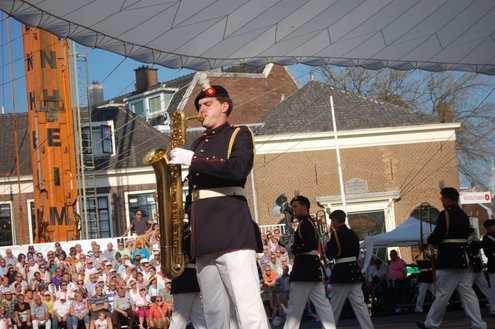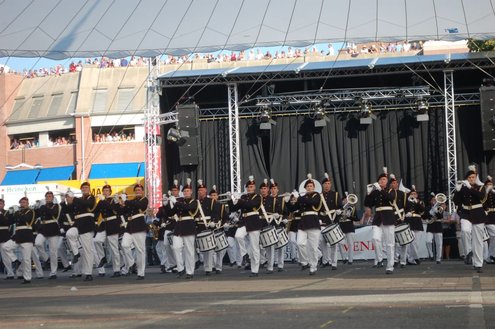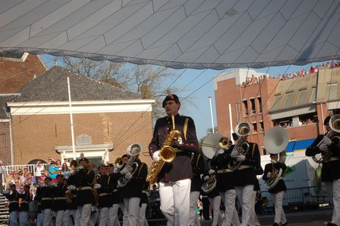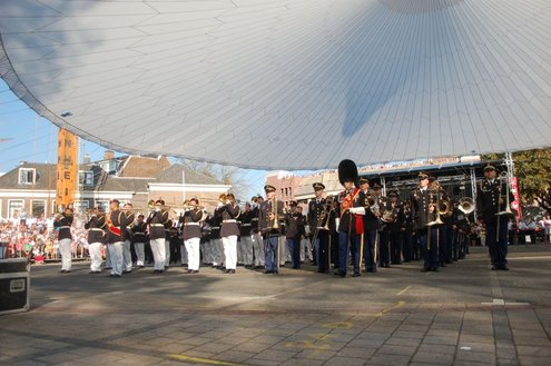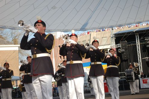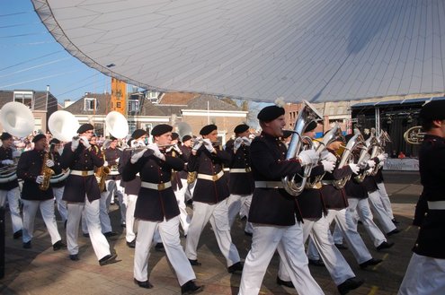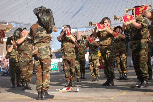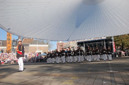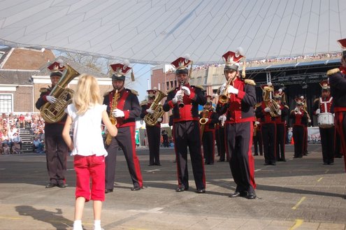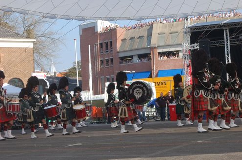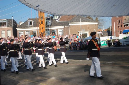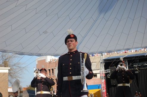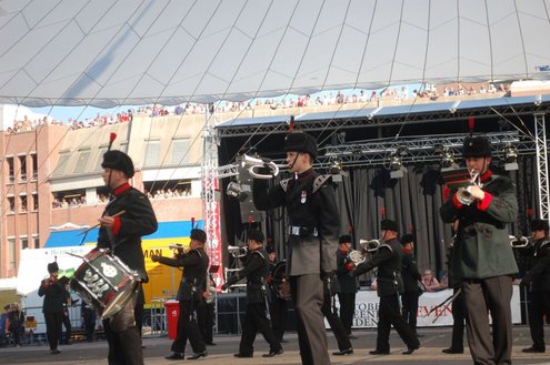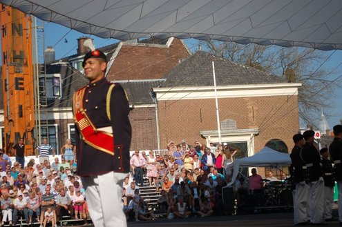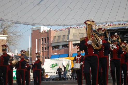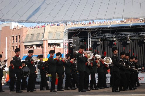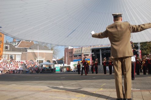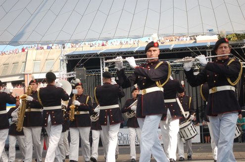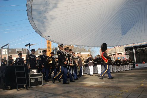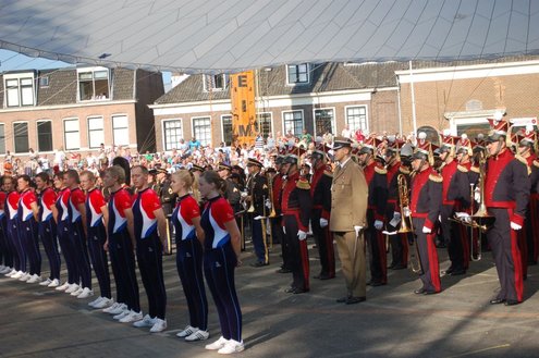 Afgelopen middag vond een groots pleintaptoe plaats op de Garenmarkt, genaamd de ‘Day of the bands’. Binnen- en buitenlandse bands maakten hun opwachting om het daarna vanavond nog even dunnetjes over te doen bij de ‘Night of the bands’ in de Hooglandse Kerk, waar ze één groot orkest vormden. Naast de Leidse K&G, waren er muziekgroepen uit Italië, Polen, Wit-Rusland, Amerika en Engeland te zien en te horen. Een fantastisch spektakel, dat zowel vanaf het plein als vanaf de daken van omringende gebouwen gevolgd werd. (Foto’s: Emile van Aelst)