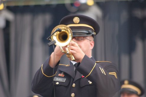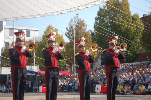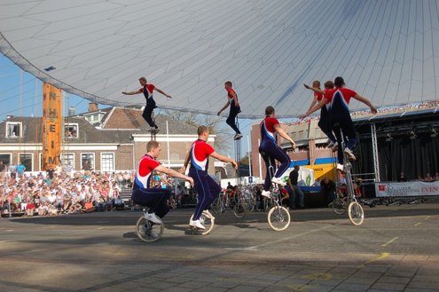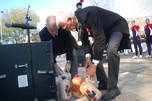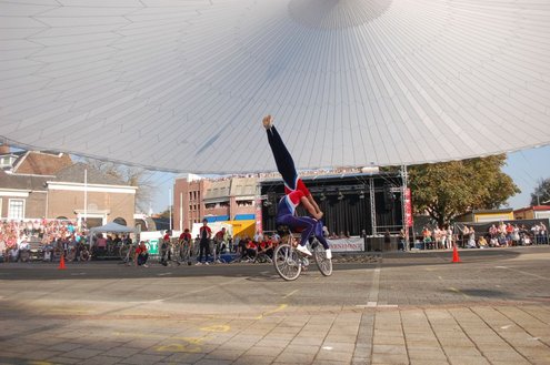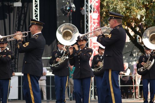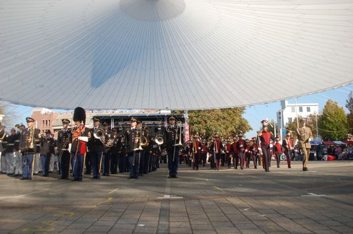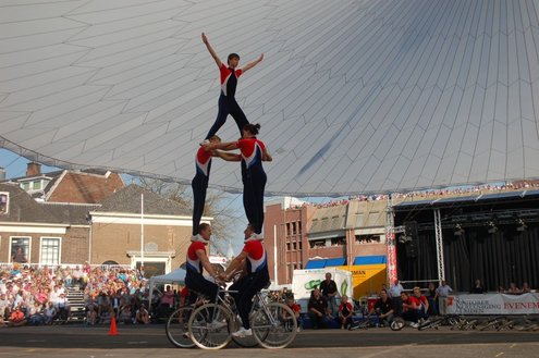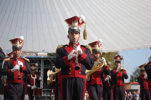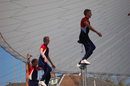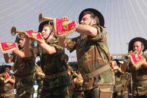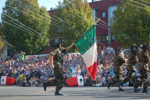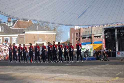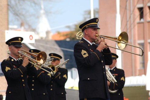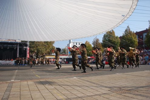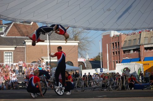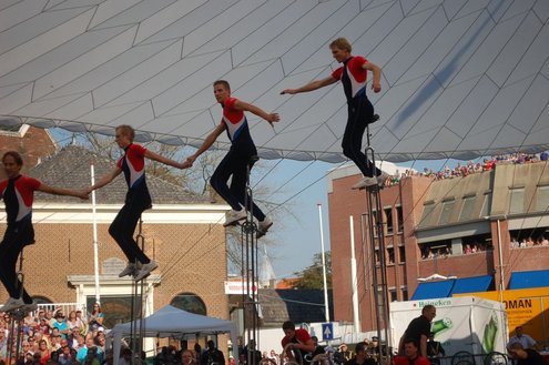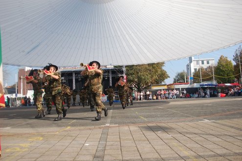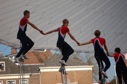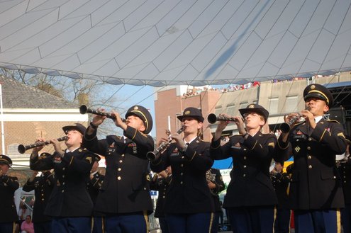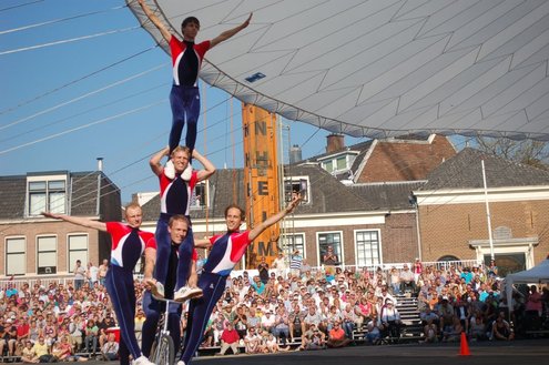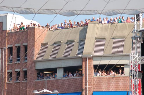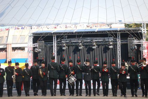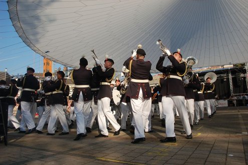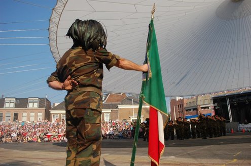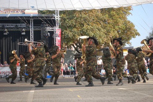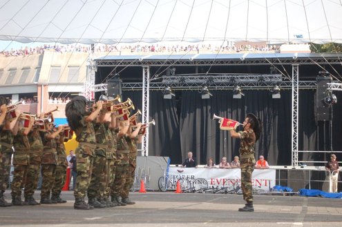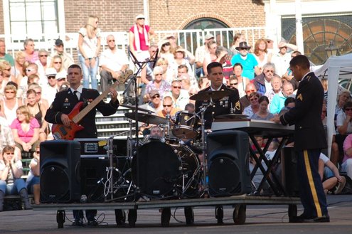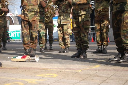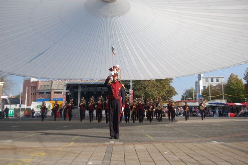 Afgelopen middag vond een groots pleintaptoe plaats op de Garenmarkt, genaamd de ‘Day of the bands’. Binnen- en buitenlandse bands maakten hun opwachting om het daarna vanavond nog even dunnetjes over te doen bij de ‘Night of the bands’ in de Hooglandse Kerk, waar ze één groot orkest vormden. Naast de Leidse K&G, waren er muziekgroepen uit Italië, Polen, Wit-Rusland, Amerika en Engeland te zien en te horen. Een fantastisch spektakel, dat zowel vanaf het plein als vanaf de daken van omringende gebouwen gevolgd werd. (Foto’s: Emile van Aelst)