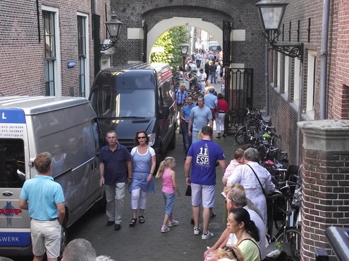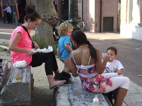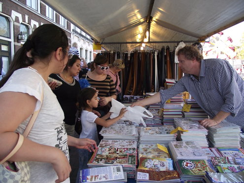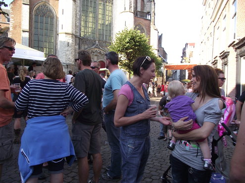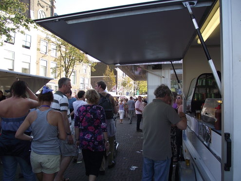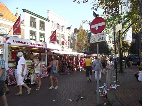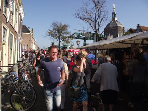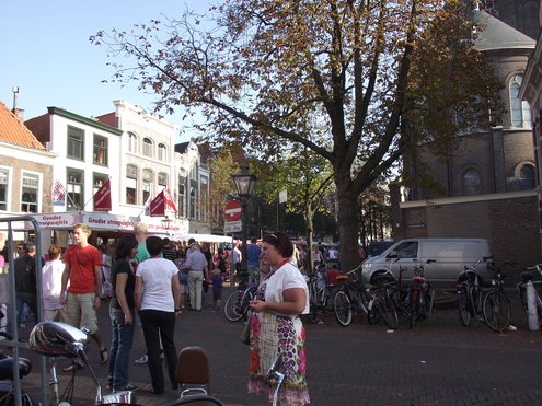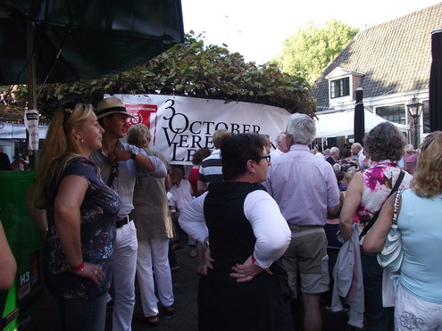 Op de warenmarkt was er vandaag bijna geen doorkomen aan vanwege de immense drukte. Langs de grachten zat het publiek, de benen bungelend boven het water, van een lekker inheems of uitheems hapje te smullen, de terrassen waren afgeladen en overal klonk muziek. Naast de traditionele 3 Oktober-planten, kleding, bijna gratis horloges en de nieuwste schoonmaaksnufjes, was er van alles te koop én te proeven: Hollandse haring, Leidse bitterballen, Portugese kip, Surinaamse lekkernijen, Indische saté en nog veel meer, werden ter plekke bereid in de vele stalletjes in het stadscentrum. Overal galmde muziek, van swingende bands en Hollandse meezingers tot spannende jazz, dat laatste bij een afgeladen Burcht, waar het publiek genoot van de sfeer en de nog altijd warme zomerzon.