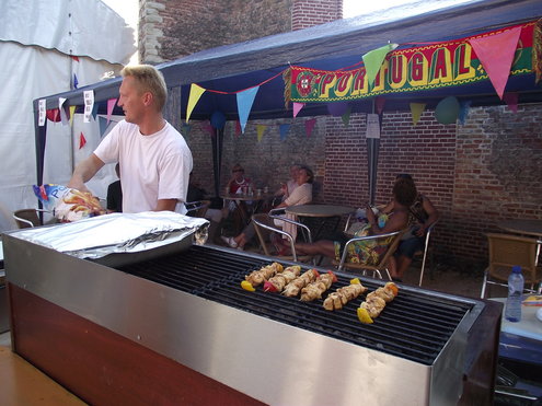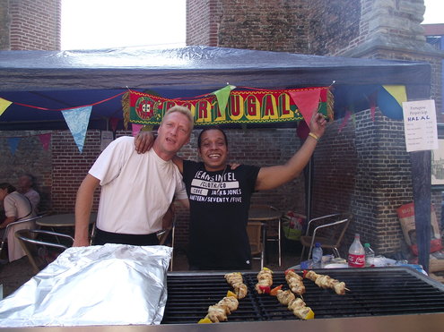 (Foto: Echte Portugese kip op het Vrouwenkerkplein, foto en reportage: Jacqueline Borg)