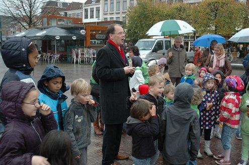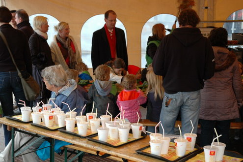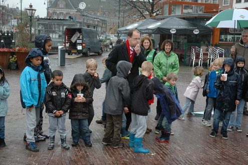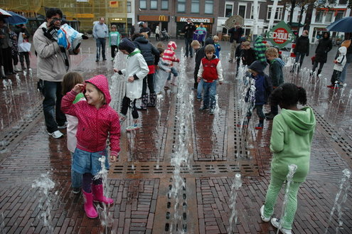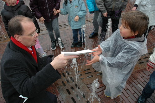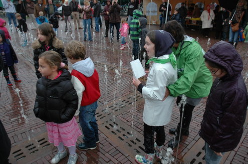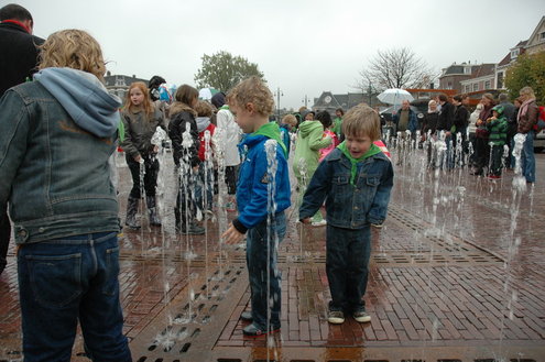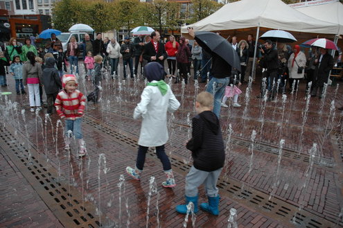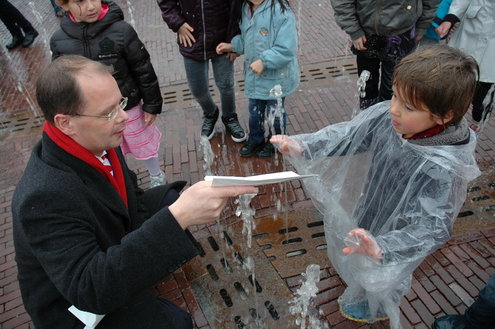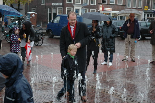 Ondanks de regen was er veel belangstelling voor de fontein. Enkele tientallen kinderen waren met hun ouders naar de Beestenmarkt gekomen, waar ze bloemstukjes konden maken onder leiding van de mensen van de Bloemenboot die aan de kade ligt. Paul Groenen zette gratis een tent neer en McDonalds en de Catwalk zorgden voor milkshakes en warme chocolade.