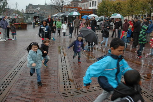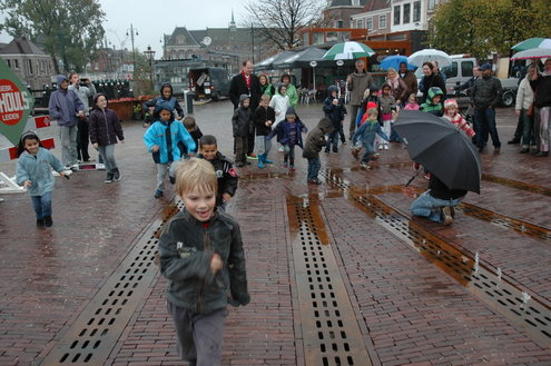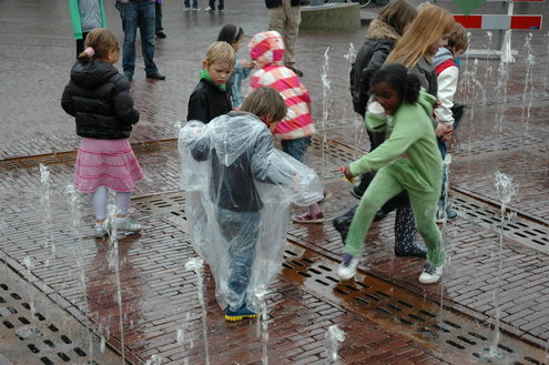 Voor de kinderen was er rond de ingebruikname een wedstrijdje droogblijven. De droogste drie kregen een prijs. (Foto's: Chris de Waard).