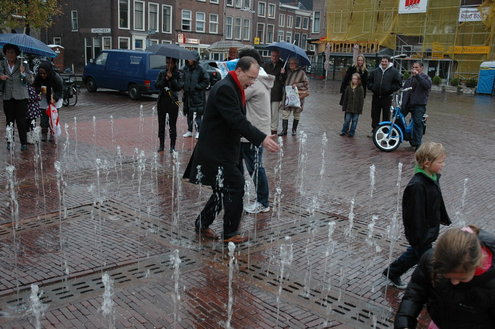 Wethouder Pieter van woensel heeft vanmiddag het bedriegertje op de Beestenmarkt in gebruik gesteld. Het doolhof van fonteintjes wordt zo genoemd, omdat het water op onverwachte momenten uit de grond spuit. Telkens op een andere plek. Zo ontstaat als het ware een doolhof, zodat wie goed oplet en snel genoeg is, tussen de fonteinen door kan lopen en toch droog kan blijven. De fontein maakt deel uit van de opknapbeurt voor de Beestenmarkt waar gemeente en ondernemers zich samen sterk voor maken.