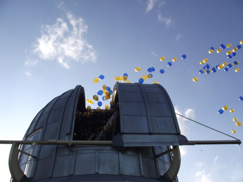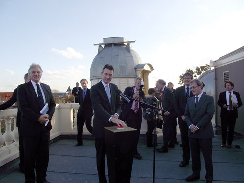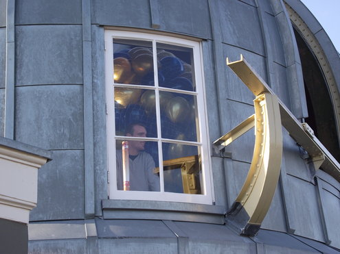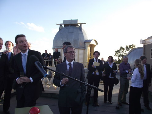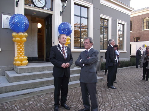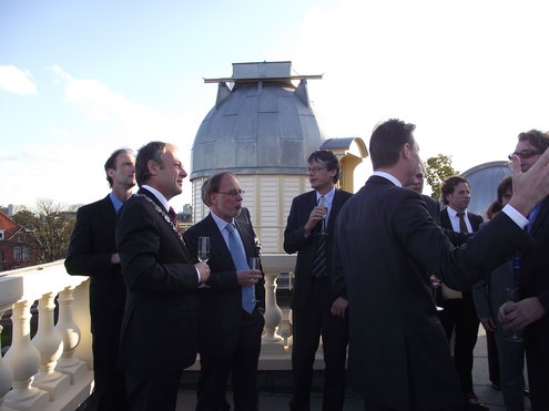 Gistermiddag vond de feestelijke heropening plaats van de Leidse Sterrewacht. De officiële openingshandeling werd verricht door Staatssecretaris Halbe Zijlstra van Onderwijs, Cultuur en Wetenschap. Door een druk op de bekende rode knop vlogen kleurige ballonnen de ruimte in en kon er getoast worden op het mooie resultaat van de tweeënhalf jaar durende restauratie, die 15 miljoen euro heeft gekost. Als extra feestelijke verrassing reikte Burgemeester Lenferink, uit naam van de Koningin, Hoogleraar Sterrenkunde Vincent Icke, een lintje uit in de Orde van de Nederlandse Leeuw, voor zijn verdiensten. De ‘Professor in spijkerbroek’ is naast een virtuoos wetenschapper ook een graag geziene figuur in de media en legt onder andere in het televisieprogramma ‘De Wereld Draait Door’ aan de hand van humoristische voorbeelden en in begrijpelijke mensentaal de geheimen van het heelal uit. Na afloop van de officiële openingsplechtigheid konden de genodigden een rondleiding volgen en zien hoe de 150 jaar oude Sterrewacht in haar oorspronkelijke glorie is hersteld.