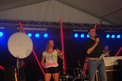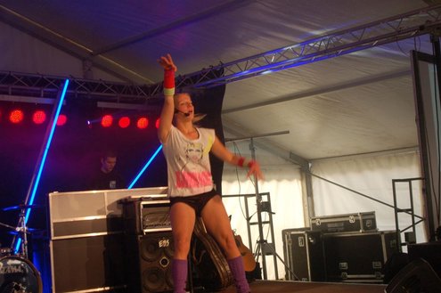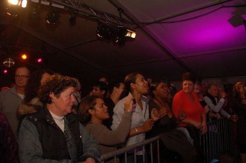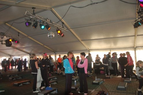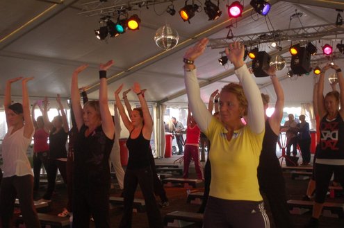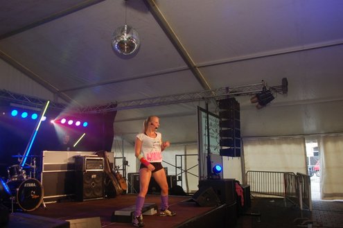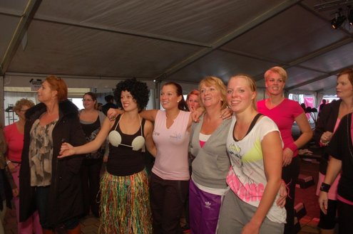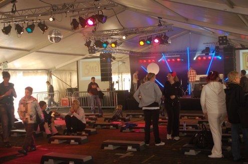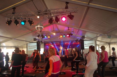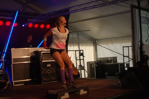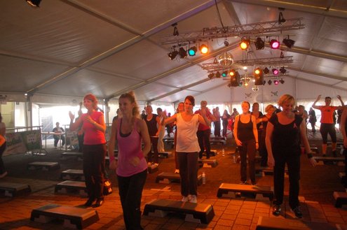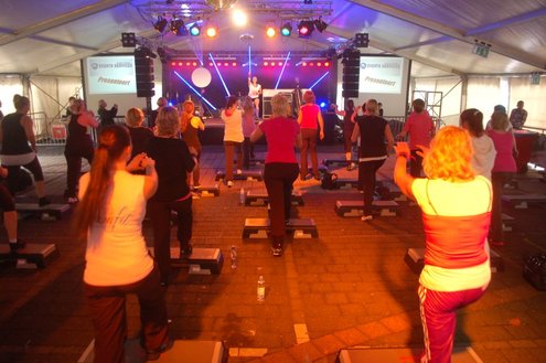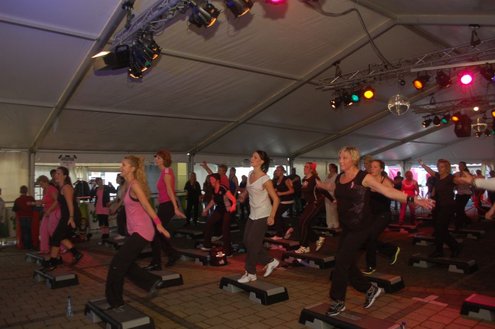 Dit hele weekend wordt er weer een uitbundig Pleinfestival gehouden op de Leidse Garenmarkt. Gistermiddag gaf Sportschool Vrouwfit een sportieve workshop ‘Steppen tegen Kanker’, waaraan zangeres Naomi, die zelf al 16 jaar tegen de ziekte strijdt, haar medewerking verleende. Zij riep mensen op haar financieel te steunen voor het goede doel: ‘Kankerbestrijding Stichting STOPhersentumoren.nl’. Gisteravond stond in het teken van de disco dance classics met onder andere Thea Austin, DJ Sven (van Veronica) Robin S., Roselle en Naomi. Vanmiddag treden onder andere de band O Nine en DJ Randy Collé op. (Foto’s: Emile van Aelst)