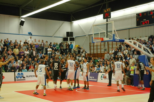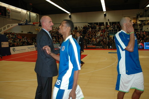 Voorzitter Marcel Verburg van ZZ Leiden Basketball is ondanks het verlies van vanavond dolenthousiast. “Het gaat goed met ZZ Leiden. Ondanks de crisis groeit het aantal sponsoren en gaat het sportief ook goed. Op basis van de begroting zijn we in Nederland echt niet nummer 1, maar we werden wel kampioen. Onze doelstelling was meespelen in de top vier.” Verburg wil de komende tijd flink investeren in het opleiden van de eigen jeugd. Er gaapt nu nog een groot gat tussen de jeugdafdeling en de eredivisie. Er is nu nog niemand vanuit de jeugd doorgebroken en dat moet anders.