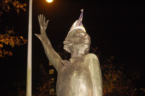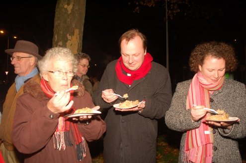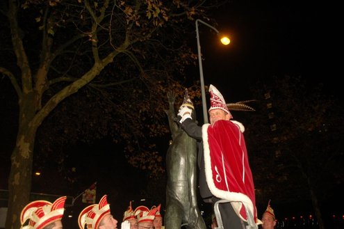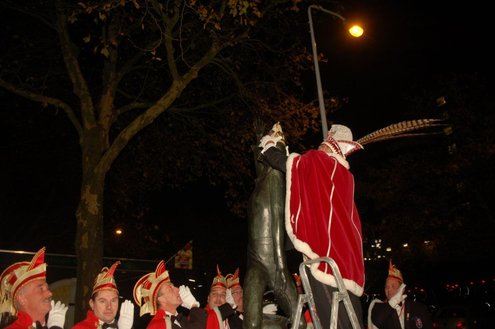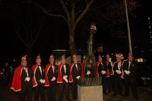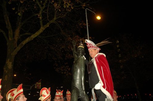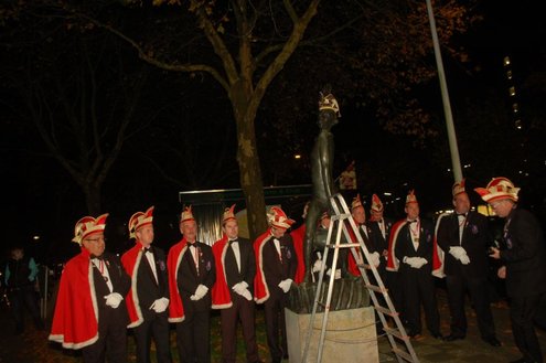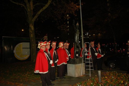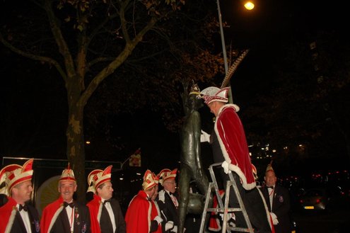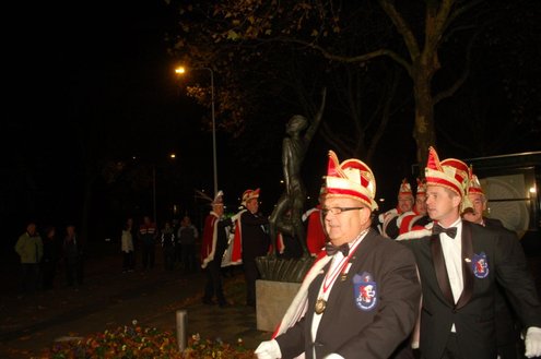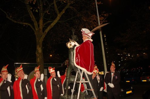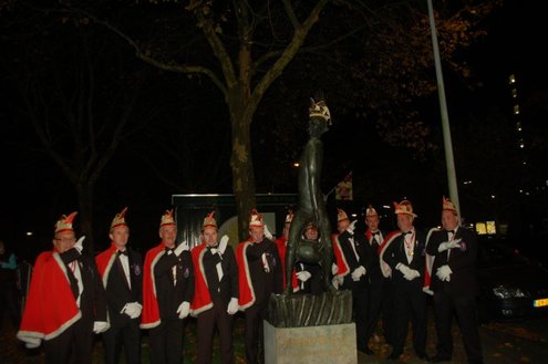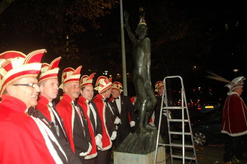 Traditiegetrouw plaatsten de Hutspotten gisteren, op de elfde van de elfde om elf minuten over elf, weer de steek op het hoofd van Cornelis Joppensz bij station Lammenschans. Vervolgens werd er natuurlijk hutspot gegeten en een jenevertje gedronken onder de muzikale klanken van blaaskapel Ex BTW. Vanavond wordt in partycentrum de Zijl de nieuwe prins carnaval bekend gemaakt. De toegang gratis ook voor niet leden. (Foto’s: Emile van Aelst)