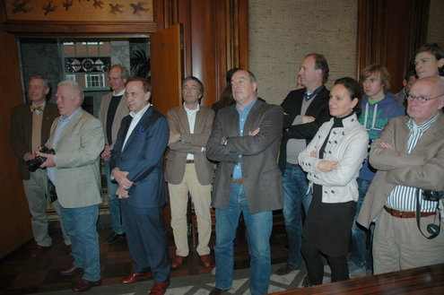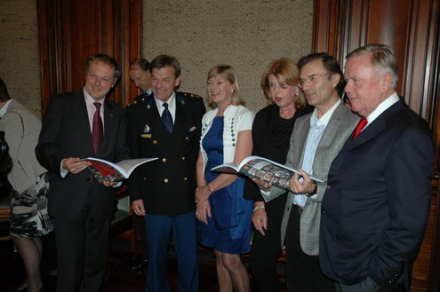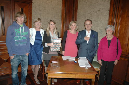 Auteur Miep Smitsloo temidden van een deel van de hoofdrolspelers uit haar boek met v.l.n.r. Henri Lenferink, Jan Stikvoort, Miep Smitsloo, Marjan Noorlander, René Diekstra en Harry Mens. (Foto's: Chris de Waard).
