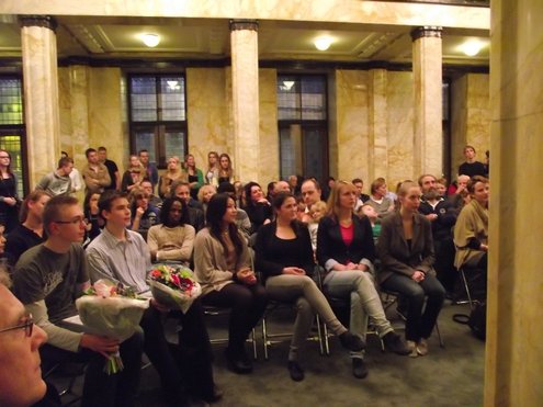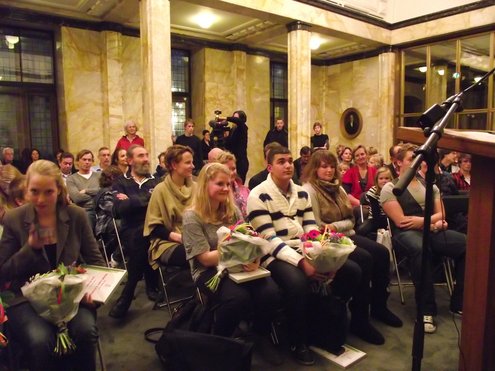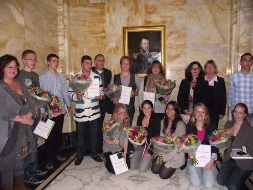 Gisteren reikte wethouder Roos van Gelderen (Jeugd, Zorg en Welzijn) voor de eerste keer de Leidse Jeugdlintjes uit. Tien jongeren tussen de 13 en 17 jaar ontvingen op het stadhuis een lintje vanwege hun inzet voor de Leidse samenleving. In de categorie van 7 tot en met 12 jaar waren er helaas nog geen genomineerden. Volgens de wethouder moet het nog “even wennen” dat ook jongeren beloond mogen worden voor hun inzet, zelfs als ze een jaar of 7 zijn. Onder grote belangstelling werden in de Burgerzaal van het stadhuis, tien bossen bloemen en tien lintjes uitgedeeld, begeleid door een persoonlijke toelichting en felicitaties van Van Geldereren. Met het uitreiken van de Leidse Jeugdlintjes laat de stad Leiden haar waardering zien voor deze jongeren, die een voorbeeld zijn voor hun leeftijdsgenoten.