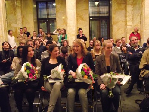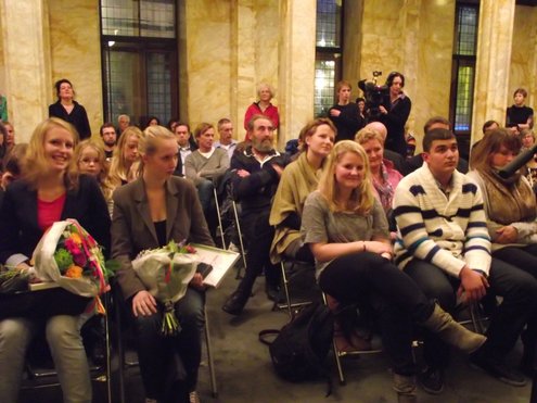 Jonge Leidse Helden, de jury en wethouder Roos van Gelderen, foto's: Jacqueline Borg.