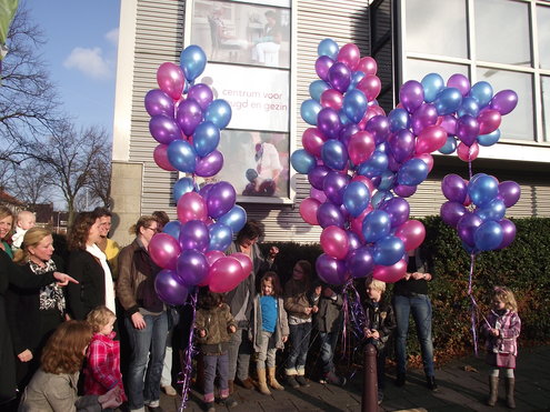 Vanmiddag opende wethouder Roos van Gelderen het derde Centrum voor Jeugd en Gezin (CJG) aan de Burggravenlaan 250. Het nieuwe CJG centrum is gericht op de wijken Midden en Zuid. Ouders, jongeren tot 23 jaar en professionals kunnen er terecht met al hun vragen over opvoeden en opgroeien. Van Gelderen knipte de grote, kleurige trossen ballonnen los en verklaarde het centrum voor geopend. Meer info: www.cjgleiden.nl