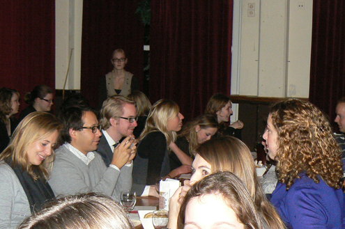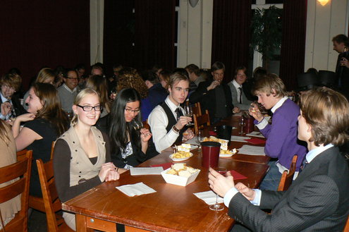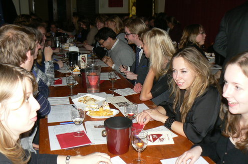 Afgelopen woensdagavond werd bij de Leidse studentenvereniging Quintus een bijzondere wijnproeverij gehouden. Vinoloog Edo Kruidering Van Noordman gaf uitleg over de herkomst van de wijnen aan ruim 60 studenten, die het zich goed lieten smaken. De opbrengst gaat naar 3 FM Serious Request. (Foto’s: Marjo Heemskerk)