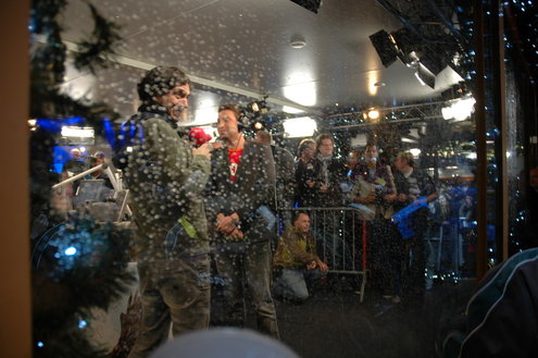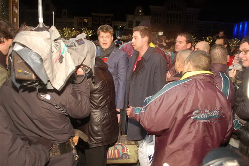 Leiden staat al tijden in het teken van de komst van het Glazen Huis, maar vandaag beleefden de activiteiten een voorlopig hoogtepunt. De hele dag werden er overal in de stad activiteiten gehouden, zoals de Glazen Huisloop, Meters voor Mama, en natuurlijk de radio-uitzendingen van 3FM die in de loop van de middag al van start gingen op de Beestenmarkt. DJ Bart Arens, ooit begonnen bij de Leidse lokale omroep Holland Centraal, mocht het spits afbijten van de Serious Request preparty vanaf de Beestenmarkt. Later op de avond, toen het Glazen Huis inmiddels was afgesloten, kwamen de twee bekendse Leidse ambassadeurs van Serious Request ook nog even langs om de dj’s een hart onder de riem te steken. Jochem Myjer en Armin van Buuren kwamen niet met lege handen. 3FM mag kaartjes, cd’s en een dj-workshop voor de hoogste prijs verkopen.